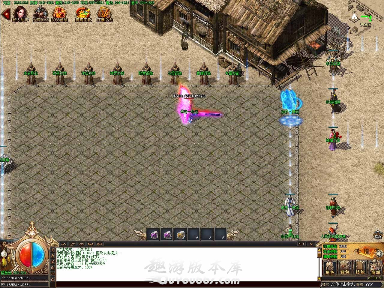 [独家首款]★佛魔道 三职业★首家公益 大极品★真正公益 ★游戏兑换码:666666 [元宝比例]:1:5000元宝 网银赠送100%,点卡赠送80% [封挂介绍]:本服采用【订制封挂插件】,对辅助零容忍 [特色介绍]:本服抛弃原始大极品一切玩法,绝对无隐藏 [玩法介绍]:全新版本,全新感觉,全新体验,全新玩法 [开区介绍]:新区第二天单区拿沙,奖励为:100充值金额 [开区介绍]:新区第三天下午合区,奖励为:大额微信红包 【焦点】 佛魔道三职业.首家公益大极品.请牢记你的游戏信息, 不要泄露给任何人管理员决不会参与游戏,请勿相信任何自称管理的人! 本服在1.76单职业大极品的版本上花费巨资,历时两个月精心改版,真正的三职业大极品 本服经半个月测试,三职业已经达到完美平衡·没有任何鸡肋职业·一起来感受三职业带来的激情吧 神罚·[一重]·烈火剑法·流星火雨·无极真气 增加三职业技能威力 诛仙·[一重]·逐日剑法·魔法盾·飓风破 增加三职业技能威力 苍穹·[一重]·开天斩·召唤圣兽·火墙 增加三职业技能威力 重数越高,技能伤害越高,技能外观也会发生改变,更加炫酷 本服没有任何隐藏地图,无论你充值多少,大家都进的是一样的地图,地图层数越高,终极装备及特殊材料爆率越高,本服所有高层地图都需要地图凭证进入,人人平等,人人都有机会! 本服赞助及礼包50封顶 。散人可通过打怪累计游戏点充值点,一样可以领取,礼包只有技能书页及奖励元宝等,不会出现影响游戏平衡的装备及物品。散人只要有时间,一切都可以逆袭。 战·道组合双开★★★★★ 战士泡点,道士前期去打基础装备和材料,先合成苍穹·[一重]特殊技能,可触发召唤圣兽,前期事半功倍,打任何BOSS和领主,每个地图的BOSS都有元宝奖励,前期必抢,材料很好打出,小怪狂暴。 战·法组合双开★★★ 战士泡点升级,法师去地图烧怪打材料出售给游戏点玩家,也可以供养战士发育,一个强大的输出离不开特殊技能,推荐前期合成神罚·[三重] 流星火雨威力大增,苍穹·[三重]火墙威力大增,清怪速度快,打材料更快 一小时打100元轻轻松松 道士★★★★★★先充值50元赞助,(双倍回收,打材料大元宝事半功倍)领取充值回馈礼包后,将特殊技能合到三重 然后挑战所有地图BOSS和领主,打出来的材料和高级装备可卖给需要的游戏点玩家 法师★★★★★★先充值50元赞助,将礼包材料合到三重技能,进地图清小怪,爆材料,经测试,法师一小时在基础地图可打100元的充值元宝,本服元宝稀缺,一切由玩家自行拟制比例出售给需要的游戏点玩家 战士★★★★ 本服战士前期没有装备和特殊的情况下,不建议挑战地图BOSS,越级挑战只会让你浪费时间,前期可靠道士供养,也可后期转职,本服转职特殊技能通用,不用担心技能问题。灵活转职 经测试 高级爆率 一个怪物爆出的装备可回收1.5-2.3万元宝(BOSS爆率更高) 本服每个职业都有强大的特殊技能 十步一PK·冰霜群雨·挂亡之眼 及技能强化卷轴 威力逆天 如散人玩家打到此技能可直接摆摊游戏点进行出售,游戏点随时提现! 本服泡点最高到62级, 62以后需要玩家自己打经验宝箱到NPC开启兑换经验,每日可闯一次通天塔,每层都有一个BOSS,打挂自动获得奖励进入下一层。每层的塔都有超高的经验合元宝奖励,每天还可领取通天塔排名奖励,此任务是每日必做。 本服为三职业大极品 战法道三职业各有各的玩法和特色,我们真正做到三职业平衡,无软肋职业,任何职业后期都可以逆天。 本服不是快餐服,真正的长久服,每日重金广告,新区稳定发展,合区后才是激情的开始, 在这里你可以认识到你的游戏知己,与战友们共写沙巴克的昨日辉煌