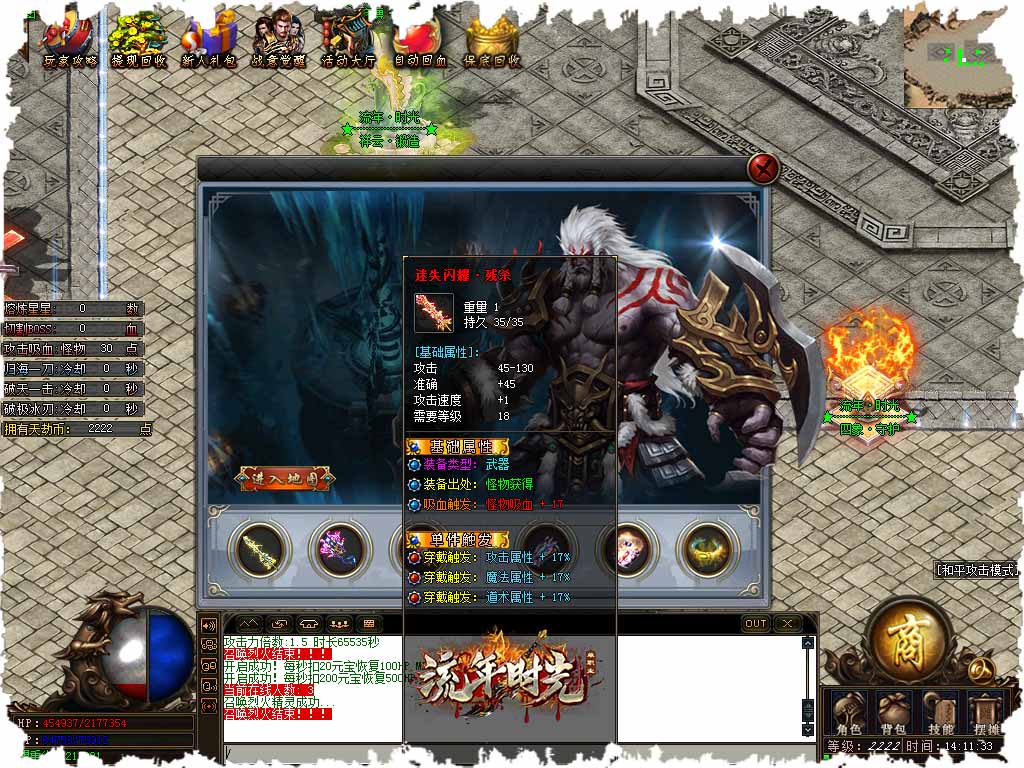 流年时光单职业传奇免费服务端-幽冥炼狱-混沌节界-异界魔城[GOM引擎] |