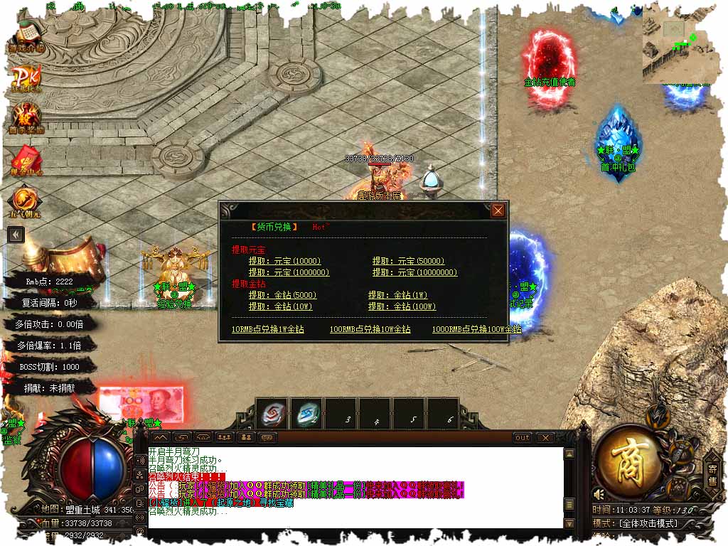 游戏介绍:独家复古当职业,限时+实物+满地爆 超多沙城奖励等你来拿。开区第二天下午16-17点之间合区,晚上20:00统一拿沙。 版本介绍:全新复古单职业,只出会员,所有装备全部爆-终极必爆,全靠打,材料元宝全部靠打,装备无任何合成。 版本介绍:金钻=1:10000 游戏点=1:10,30顶赞,无其他赞助-无暗坑,所有东西全靠打,物价保值老板无限收收收! 版本介绍:不管是散人玩家还是老板土豪,建议有多余元宝一定要先升级天书的爆率加成,哪怕只提升几次,爆率加成的感觉明显不一样。 版本介绍:游戏点玩家前期若想快速转生,可以选择收转生灵石或者开启[天材宝箱](开启8个宝箱必出一个转生灵石) → 也可以用金钻直接升级。 版本介绍:天材宝箱在转生地图所有BOSS的爆率为1/3,称号地图和一品官爵地图爆率超高。 金钻用法:五行切割、购买赞助、锻造复活 等等 好多地方都用的到哈。 元宝爆率:限时奖励、BOSS首打、装备回收、游戏活动、赞助礼包内赠送、各种怪物爆出。 元宝用法:修炼天书、进阶官衔、强化技能、开经验丹、剑甲强化,好多地方用的到。 材料介绍:本服怪物爆出的所有材料都有自身价值,玩家打到千万丢弃。可以放商铺出售,或者自己使用。 转生灵石:稀有材料5-10转必须物品,5转以下地图BOSS爆出,5转以上地图任意怪物有爆率,也可开启[天材宝箱]获得,开启8个宝箱必出一个转生灵石。 版本地址