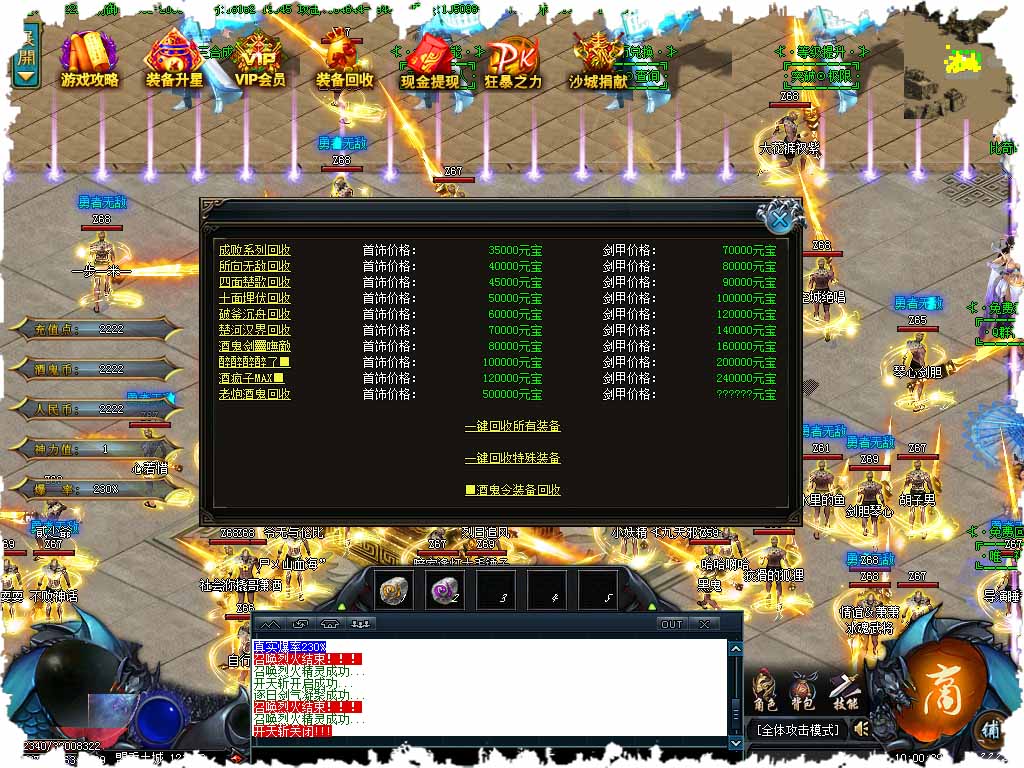 版本介绍:此版本专为散人设计,任何地图BOSS都刷的比较均匀(BOSS刷超级多),千倍万倍(小怪)爆率超级高。 版本介绍:新人上线第一步,点击群礼包,输入兑换码8888兑换初级时装+群毒+魔法盾+人物9转+超级会员等。 版本介绍:土城找到免费回馈NPC,领取10级技能+斗笠盾牌勋章套+80级等级卷+满切割+1.3倍攻击+1.3倍爆率等。 版本介绍:基本就可以去地图里面为所欲为,散人核心地图野外地图,等级地图,一个一个地图慢慢混上去! 版本介绍:沙城捐献40元刀刀切割3倍+狂暴之力10元(建议一定要买,超高爆率跟伤害吸收,捐献的钱拿沙50%返还给玩家)。 版本介绍:本服最高充值300元,核心充值50-100-300回馈地图.多出来的酒鬼币可以拿来捐献排行进入排行地图。 版本介绍:游戏点核心地图狂暴圣地+捐献圣地+富豪地图+回馈地图以及后期所有高级地图(本服所有装备打怪获得)。 版本介绍:100元回馈:龙吟上三刀刀麻痹+龙吟下四+觉醒宝石隐身四件套+50%怪物鞭尸+50+100的回馈地图爆率超级高。 版本介绍:上三为斗 盾 章 土豪强烈推荐合成,刀刀麻怪,新手上线就打BOSS,章为倍攻 盾为复活 斗笠为攻速。 版本介绍:本服除了上三,其他的装备全部打怪获得,无任何合成,所有玩家都看脸,决无任何隐藏。 版本介绍:散人不充钱也可以回收装备,回收币,回收酒鬼令,合成上三,小怪也有可能爆终极,只要你有时间。 版本地址