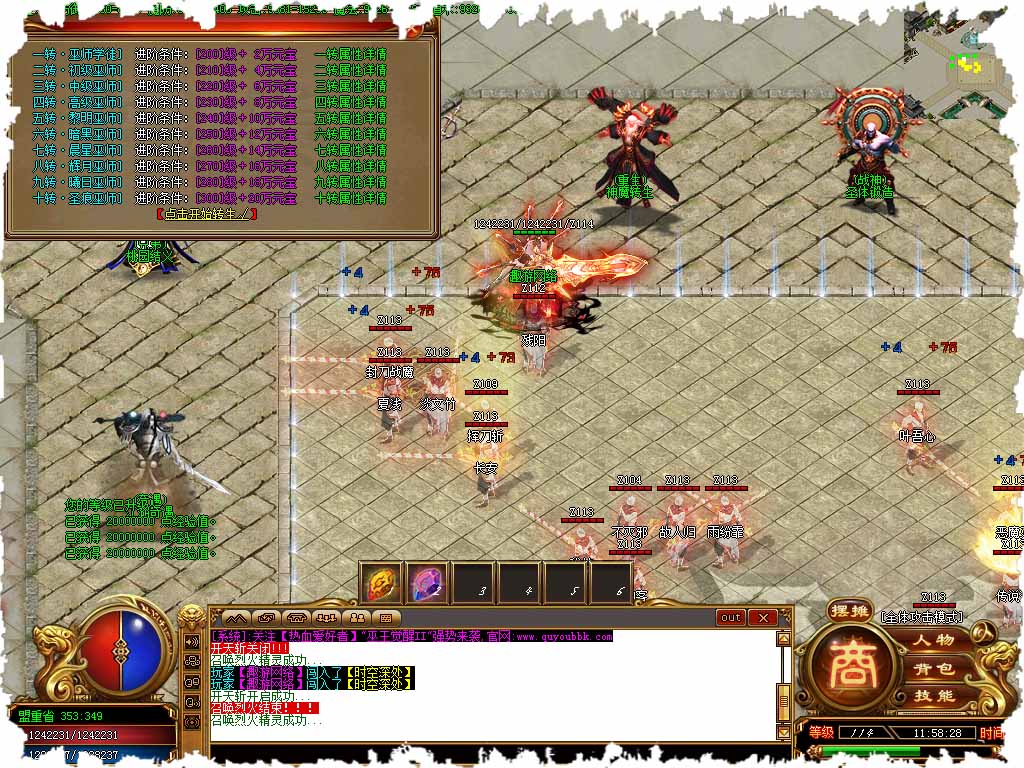 版本介绍:这个传奇服务端自带假人系统,清档之后假人自动上线。QQ群兑换码:888888 版本介绍:本服由原魔天大极品团队历经半年精心制作的神器版本,传承了魔天版本的经典元素,增加了更多更好玩的玩法。 版本介绍:上线领QQ群礼包可获得永久冰冻、刀刀切割、无限隐身、施毒术等,真正做到散人上线能打所有BOSS。 版本介绍:总共2个大地图,没有任何充值、积分和需要游戏点进入的地图,我们承诺所有玩家通过努力可进去本服任意地图,4444以上怪物即可爆出全服所有装备,绝无保留! 版本介绍:很多实用功能都需要用到材料和元宝,我们承诺本服物价稳定,绝不让散人玩家白跑一趟! 版本介绍:开区之前已充分了解单职业市场,我们承诺本服"限时奖励"和"永久回收"无论数量和价格都不会低于同类型单职业版本,我们宁可自己亏点,也绝不会对玩家寒酸! 版本介绍:为了做到公平公正的游戏环境,装备材料一切靠打,一切靠打,一切靠打,重要的事情说三遍。 版本介绍:游戏中没有任何没用的BUFF,所有BUFF经过技术亲测,BUFF属性十分强大,具体BUFF功能请前往游戏体验。 版本介绍:购买礼包后系统自动累计50游戏点到沙奖励)1.2倍攻、元宝回收增加100%、刀刀切割50W、5倍随身泡点、4张专属打宝地图(刷新全服顶级BOSS)。 版本介绍:本服共有4阶魔力,每阶属性大有不同,游戏实战型非常强,有条件的玩家建议入手,有专属打宝地图,第三套魔力开始就有防毒功能 版本介绍:新增传承称号系统,获得称号后人物属性上涨,反弹元素,小号与大号有一战之力,野蛮冲撞进入"冰冻"状态,持续2秒。 版本地址