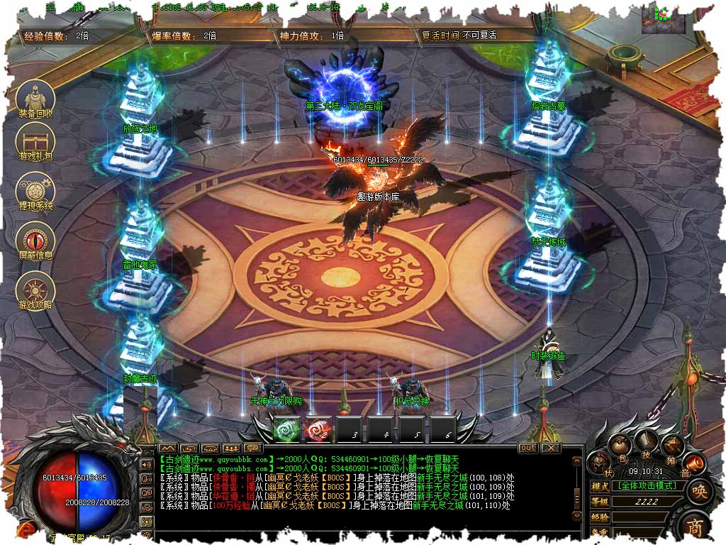 【版本介绍】2月16日更新内容,1:增加永久刀刀切割地图(3大陆可以进)此地图爆率很高。2:刀刀切割属性更改: 刀刀冰冻怪物3: 提高圣级装备爆率 图纸爆率4:增加元宝回收NPC在土城小安全区,每个区保底回收10亿元宝=反馈玩家每区1000游戏点。 【版本介绍】玩家打到的元宝可以回收给NPC100万元宝=1游戏点(经过测试会员号一小时可以打20) 【版本介绍】增加称号地图和转生地图怪物刷新数量翻倍,升级无限可以吃经验珠升级加快升级速度。 【版本介绍】散人玩家起步可冲18,直接送变异宠物,开启疯魔和捐献,疯魔加50%攻速,15%的攻击力,疯魔加捐献可以下捐献狂暴地图,可以召唤2只宝宝帮忙打怪。 【版本介绍】捐献地图里面有两种怪物(八荒战体·神秘神将)(返璞归真·未知神将) 这两种怪物和6大陆地图怪物一样的爆率。 【版本介绍】最高能爆到圣级装备所有特殊技能和所有图纸,捐献地图每小时各刷2只。 【版本介绍】元宝在本服相当重要甚至超过点卷的重要性,其次转身材料 时装碎片需求量都是相当大的,具体比例及价格游戏内自己定! 版本地址