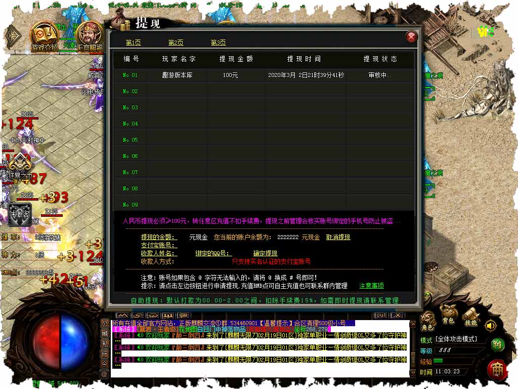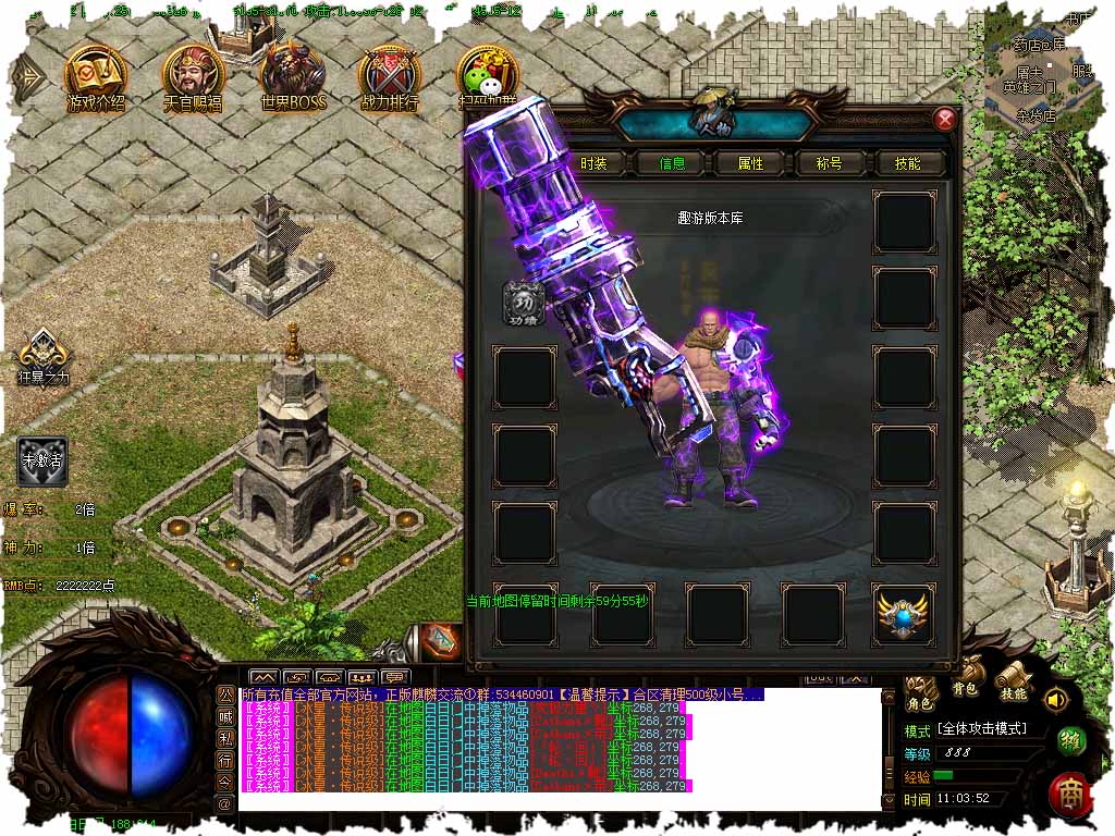 【版本介绍】本服货币有仙元、荣誉、元宝,游戏点,游戏点可以通过直接冲上或者打限时奖励获得,元宝和仙元,荣誉可以通过回收实物打怪获得。 【版本介绍】第十大地图的四个角落里有四个隐藏地图,四个隐藏地图里刷新超级BOSS。开启逆袭之路。 【版本介绍】新手上线领取群礼包,兑换码领取三大神技,领取隐身斗笠,初级特殊。 【版本介绍】开启捐献(刀刀冰冻怪物,刀刀切割怪物555W血量,爆率提升50%,自动捡物)。 【版本介绍】开通一个狂暴模式,额外增加0.4倍神力+基础神力=1.4倍神力,全元素加10%,攻魔道增加8888。 【版本介绍】购全服唯一礼包,赠送30级剑甲套,超级头盔,刀刀切割,1.0倍爆率,等级直飞500级,省心省力。 【版本介绍】然后进入新手地图打初级装备,然后进入捐献、狂暴等,还可打材料货币升称号转生。 【版本介绍】新增专属的奇缘任务,通关可直接获得合体加速装备(全部可以爆出)。 版本地址