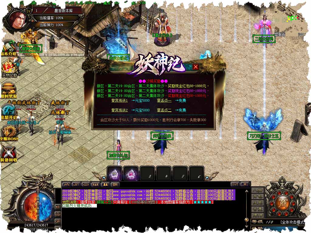 版本介绍:历时半年打造,2020年最具特色单职业版本,全部装备靠打,打到就是挣到,真正散人服。 版本介绍:本服为单职业特色版本,PK技术全新玩法,无秒PK畅爽。 版本介绍:本服加入大量最新玩法,小怪与BOSS均可爆出高级装备与材料,人人可拿终极,真正的散人服,只要花时间一切都有。 版本介绍:10点30·13点30·16点30·19点30·22点30·每日5区,新区准时准点开放,区区宣传,人气区区饱满,如果大家觉得本服不错,请介绍给你的朋友。 版本介绍:年度最具特色单职业,活动超多,终极装备与游戏点直接在游戏活动BOSS中可以爆出,奖励人人可抢。 版本介绍:合区后帐号错误,请在帐号后加a,如果仍然有误,则改为加b、c、d,若帐号长度已满10位,无法在后面加字母,则将最后一位改为a、b、c、d多试几次。 版本地址