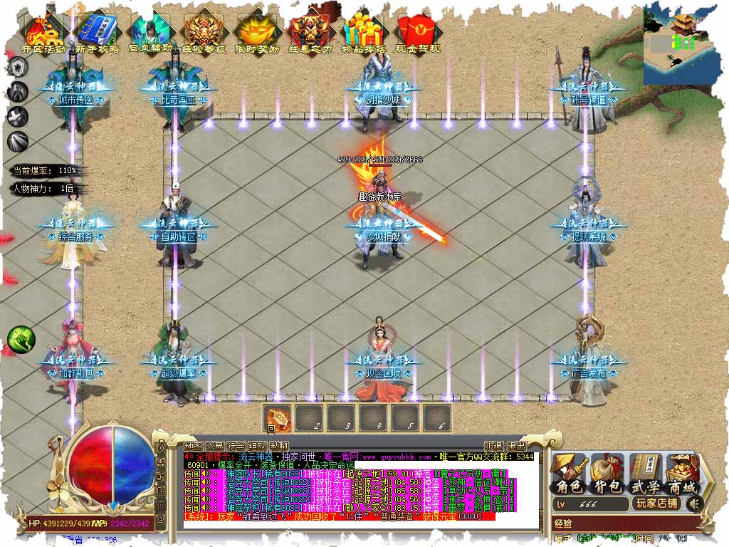 版本介绍:2020年独家制作,全新版本,顶赞50,游戏比例1:100点卷,游戏点1:1,一个顶赞闯遍传奇。 版本介绍:为了广大玩家的利益,取消游戏内多充多送NPC,增加点券回收功能,为散人玩家带来更多福利。 版本介绍:修改盾牌、称号、转身晋级模式,将全部不在需要点券,全部更改需要为需要元宝,元宝现为主要消耗货币,散人空间更大。 版本介绍:赞助大使修改,每开通一个50赞助玩家,抽取50累计入沙城奖池,只求人气。 版本介绍:取消三红切割幸运爆率,更改为五红切割,五红切割BUFF逆天,异常凶猛!五红切割也不需要游戏点升级,只需点券即可,100%成功,具体游戏内查看。 版本介绍:增加超级爆率NPC,开通超级爆率需要200游戏点,超级爆率每次触发必爆珍贵材料辉煌灵魂,辉煌灵魂为后期升级材料,非常保值,游戏内BOSS也有机会爆出!超级爆率永久生效,开通超级爆率的200游戏点。 版本介绍:取消无沙捐无法攻沙,更改为等级大于300级即可参与沙巴克! 版本介绍:增加风暴之力称号,属性逆天,拥有专属地图,地图爆率超高!具体游戏内查看。 版本介绍:由于符文元素反伤符文,造成游戏内伤害异常,修改反伤符文为击PK爆率,同时满符文将免费学习神秘技能。 版本介绍:等级开放至588级,500级以后升级需要2个辉煌灵魂,高等级压制明显。 版本介绍:修改十二生肖最终属性,最终生肖蛛网buff几率大幅度提高,增加打掉传送石BUFF。 版本介绍:修改暴走巅峰称号属性,1.10-1.19倍增加20%攻速,1.20-1.29增加50%攻速,1.30增加100%攻速,提升地图爆率! 版本介绍:修改全服红怪爆率,修改刷怪模式,地图不同,刷新红怪时间和数量不同,具体游戏查看! 版本地址