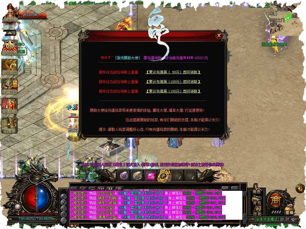 【游戏介绍】:用心做传奇,简单耐玩,不复杂,终极全爆,长期耐玩无隐藏,独家超变版本,只做最好玩最好看的游戏。 【游戏介绍】:本服是微端更新,不用特意下载补丁,只要一个干净的传奇客户端,把登录器下载了放进去,就可以游戏了。 【游戏介绍】:欢迎进入白蛇迷失超变版,游戏12000级封顶,转生100转,八个大地图,地图N张,100多套装备,完美设置,等你来战。 【游戏介绍】:本服充值比例1元=500000元宝+50000封神币+2游戏点+1游戏点,无任何比例,完全公平公正原则,所有人同一起点 【游戏介绍】:新手上线,微信扫码领取微信大礼包,起步快人一步。 【游戏介绍】:装备全爆,元宝好打,等级免费,在线回收,让你根本停不下来. 【游戏介绍】:实力团队运营,每天5个区,区区人潮涌动,完美爆率,散人终极不是梦想! 【游戏介绍】:每天5个新区不段开放,请合理安排时间,精彩内容等你来战!新区开区第二天晚上攻沙!老区天天攻沙! 【游戏介绍】:特别提示:后期的大地图进入方式:1.完成任务进入,2.或者达到要求进入! 【游戏介绍】:《第21季全面更新》新增无限刀速狂暴模式,新增自动拾取功能,新增自动回收功能,新增自动挂机功能,散人逆袭!新增超级ESP封挂插件,完美封一切WG,公平公正!更多更新请游戏体验,本服长期稳定,定期更新!多的就不说了,具体的请玩家上服体验! 版本地址