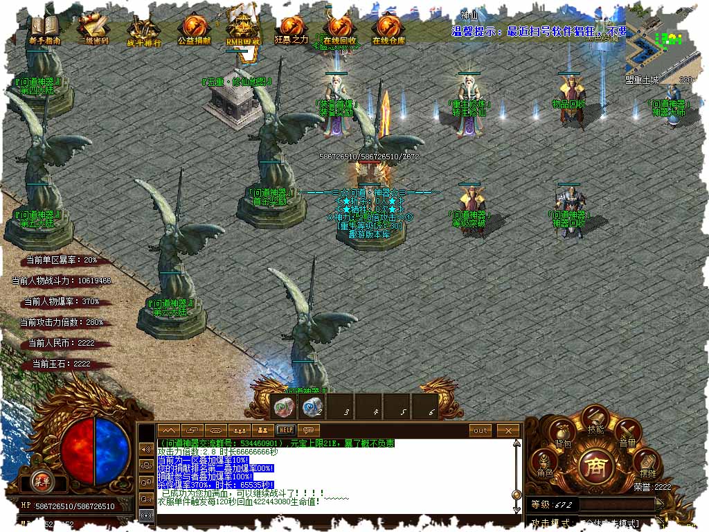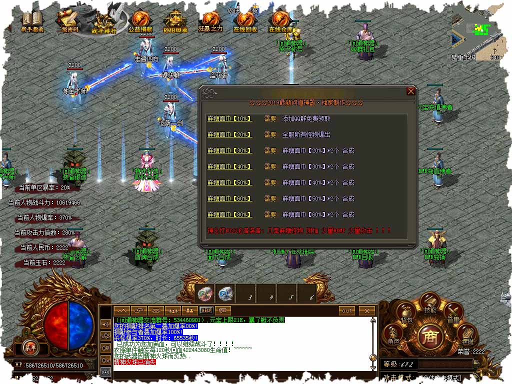 【补丁大小】:6.05GB,30来个PAK补丁二次加密,测试客户端:17周年纯净端。版本自带假人系统,清档之后假人自动上线。QQ群兑换码:654321