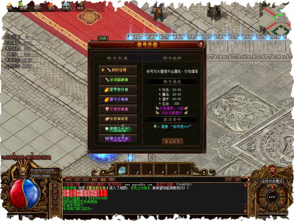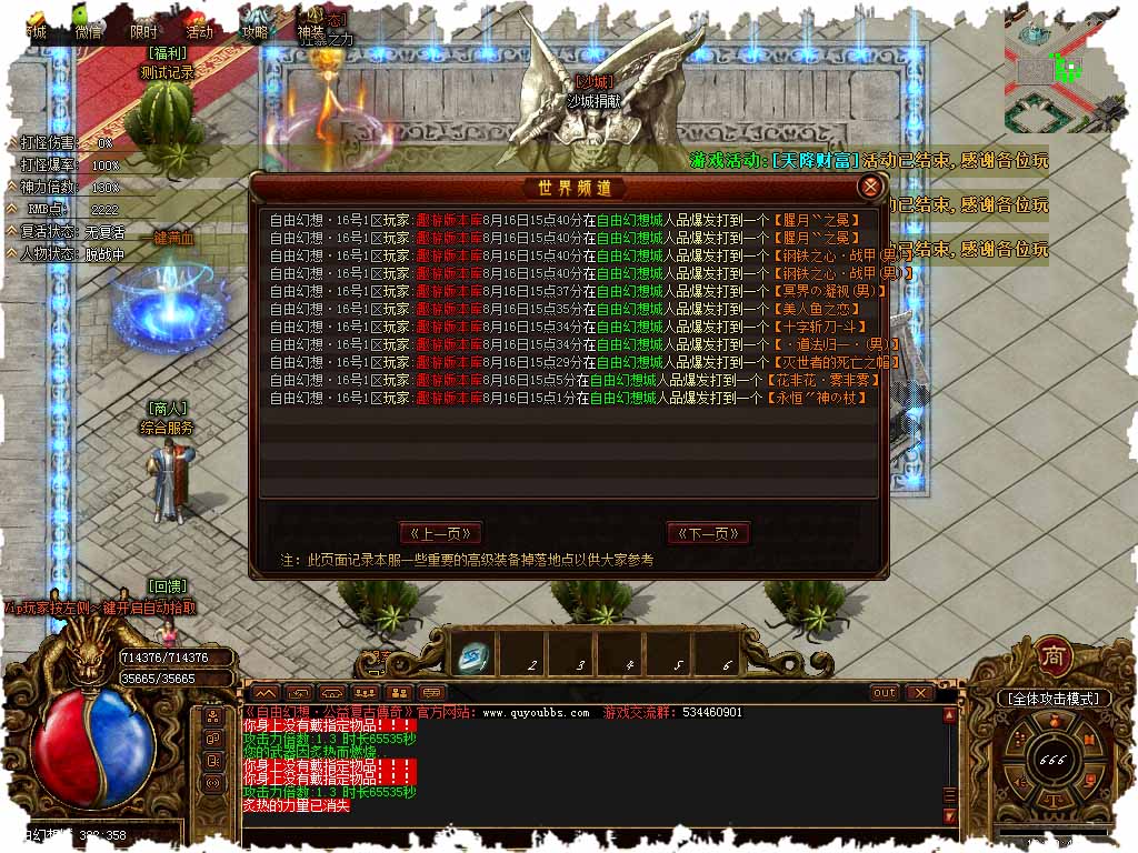 [游戏特色] :此版本默认需要GK插件和esp,如果不用会影响部分功能,比如自动捡取、封挂、其他功能那些,微信二维码需要购买插件,也可以自己换成普通的二级密码脚本。 [版本类型] :独家特色专属版本, 2020年中巨献,独家特色,激情无限。 [开区时间] :每日五个新区,第三天下午合区,晚上8点准时攻城。 [游戏特色]:上百张地图,十几个大陆区域,满足你一切的探索需求。 [限时奖励]:爆率全部开放,区区300多件限时奖励,N张地图,超多玩法,耗时一年制作完成,等你来发掘惊喜! [封挂模式]:定制GK封挂插件+24小时专业封挂人员巡查,保证游戏公平! 版本地址