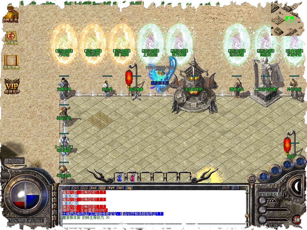 【版本介绍】游戏比例金币1:200000 灵符1:1。 【版本介绍】游戏建议玩两个号,一个挂机一个打怪打材料。 【版本介绍】装备开区第三天晚上拿沙,第三天下午四点合区。 【版本介绍】开区每周稳定开放1-2个区,此传奇版本后台会记录人物每次攻击魔法速度,请爱护游戏环境,希望大家能够共同创造一个公平游戏环境。 【版本介绍】土城药店和书店门口刷新传奇宝宝,爆会议厅和决战场凭证!! 【版本介绍】新增潜龙峡谷地图,潜龙峡谷进入方法,先从不归路进入,然后进入兽人古战场-潜龙峡谷-香石古墓-埋没之城-避世森林,按顺序进。 【版本介绍】桃园之门21,84神秘老人处每日14点20点可以进天地门。 【版本介绍】在祖玛可以用决战场凭证传送进去,里面刷盛大BOSS。 【版本介绍】青蛙洞、驽马洞、奴隶洞等经典地图回味无穷,升级速度适中,装备爆率适中,适合长期玩家。 【版本介绍】铂金、龙戒等沃玛初级装备,祖玛、驽马爆祖玛类装备,水上、蛮荒小怪爆赤月和普通域类。青蛙洞爆鲜花、道幻类,具体爆率请玩家自己摸索;具体请网站查询。本服装备持久为0时,物品不消失,方便玩家挂机, 版本地址