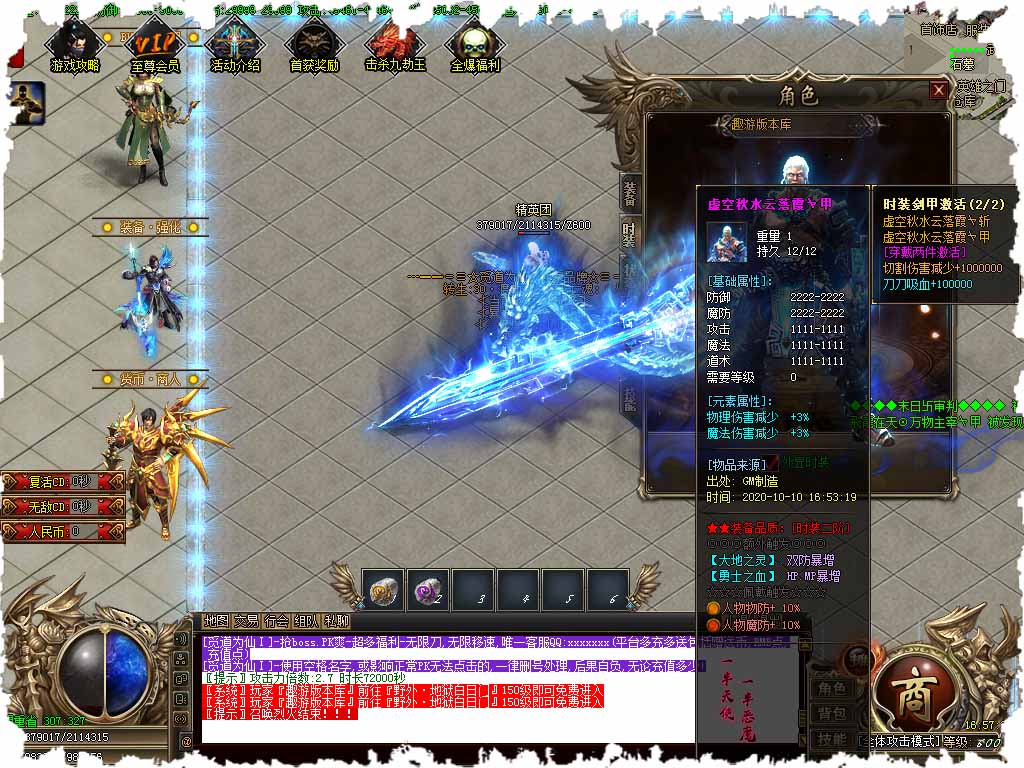 【元宝比例】:1:1000000元宝,多充多送活动火热进行中!! 【装备介绍】:本服所有装备在小BOSS身上都可爆出!50倍爆率!打到就划算。 【游戏特色】:本服融入多种特色,超个性BUFF,超炫地图装备、多种特色请游戏体验。 【地图介绍】:地图多达上百个,每个地图都有不同级别的BOSS都可爆出终极! 【游戏介绍】:2020年最新版本、散人免费玩家雄起、实力团队携手运作。 【开区模式】:每天开放五个新区,第二天合区攻沙,全力推广!区区人气爆棚! 版本地址