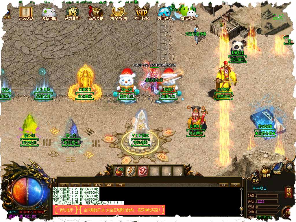 【版本介绍】本服1000封顶,简单说下等级提升,主要分为三个阶段,非常好升的,基本无虑!不会像有些服,等级都坑挂你。 【版本介绍】第一阶段: 0 - 600级,土城泡点可直接泡到600级(大概25分钟就可到)。如果你参加了涂药泡点更快。也可吃,等级单[初级] 每颗提升1级,到处有爆,各地图都有爆。第二阶段: 600- 900级,600-900级打,等级单[终极]提升。丹非常好打。也可在第二大陆直接买丹提升,便宜无忧。第三阶段: 900-1000级,900-1000级打,等级单[无敌]提升。丹非常好打。也可在第三大陆直接买丹提升,便宜无忧。 【版本介绍】此传奇版本等级非常好升,没有任何乱七八糟的坑,就这么简单。 等级最高者可在(右边小安全区申请天下第一,有属性的可以去看看) 【版本介绍】新增野外BOSS刷新点,城主·【封魔谷】·守护神,刷新地图:【野外地图】 土城右下角进入,【四世·魔王】·BOSS,刷新地图:【回馈:魔王地图】,土城正下方进。 【版本介绍】80元礼包:可领终极宝宝、终极切割机,右下角礼包NPC查询,这里不一一说,200礼包:附刀刀切割1%、(没有更好的了、礼包也是最高200的礼包,没有更高。 【版本介绍】开放狂暴状态可提升红蓝HP,攻魔道属性提升,全元素+10%,人物目标爆率+15%,忽视目标防御+15%。 【版本介绍】新增趣味活动,团战争夺赛开启时间:每日 13:00、18:00、23:00,守护‘百团玉玺’5分钟为胜利行会!!胜利行会可以获得本行会的专属地图。 版本地址