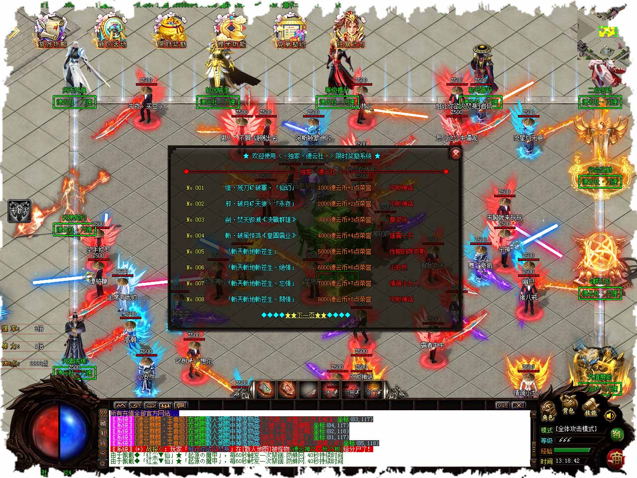 【版本介绍】2020全新德云社传奇版本,等级:最高888级,最高转生20转,渡劫:最高渡劫为6层。 【版本介绍】本服主要货币为德云币、元宝和游戏点,升级材料有升级丹和技能神石。 【版本介绍】散人可用22游戏点开启捐献狂暴,然后加群领取满回馈。领取三大神技、领取隐身斗笠、初级特殊和切割,接着开启捐献(刀刀冰冻怪物。刀刀切割怪物1111W血量。爆率提升100%,自动捡物)。 【版本介绍】20游戏点开启狂暴之力,超级属性,转生进阶到十七转时需要元宝继续,所需材料数量:元宝+3500W,暴击机率增加+26%,攻击伤害增加+32%,神力攻击提高1.34。 【版本介绍】新增混沌圣地打宝地图,该地图而外叠加1.5倍爆率,爆率全开,BOSS掉落所有装备,全部刷新终极BOSS,渡劫六层+850级进入。 版本地址