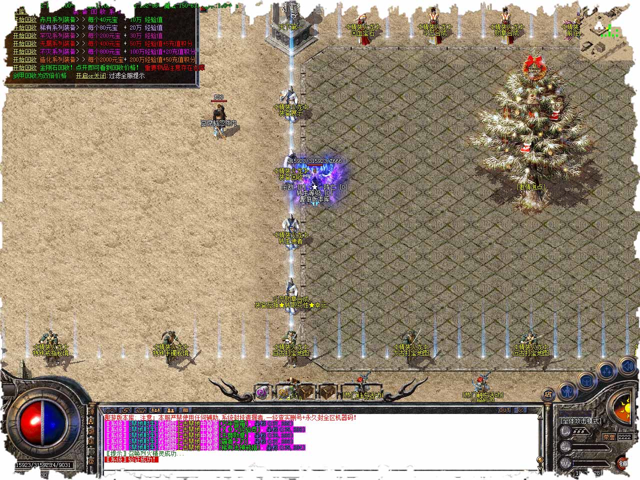 【版本介绍】道士宝宝48级召唤兽王1只,50级召唤兽王1只,52级召唤白虎1只,55级召唤2只白虎,60级召唤1只天堂天将,65级召唤2只天堂天将。 【版本介绍】本服三职业平衡,后期各有优势,战士技能用好可一套秒人!法师火墙铺走位,后期也是难逢敌手!道士消耗持久战无人能敌! 【版本介绍】本服高级技能可以在散人打宝②里面的尸王殿爆出,爆率非常高,10分钟一刷,守几次可以节约书籍的费用。 【版本介绍】本服爆率根据地图等级怪物HP量计算,越往后,爆出高级装备几率更高,15-30分钟刷新,注意:特殊四件套不能合成只能在指定地图内怪爆出。 【版本介绍】本服特殊装备全靠打,属性及其强,每种特殊一共分为3个等级,另外特殊首饰一共6个等级包含手镯戒子均是单件触发属性,散人玩家可以卖给游戏点玩家挣取元宝!土豪玩家可以回收高级装备获取充值积分领取回馈盾牌等。 版本地址