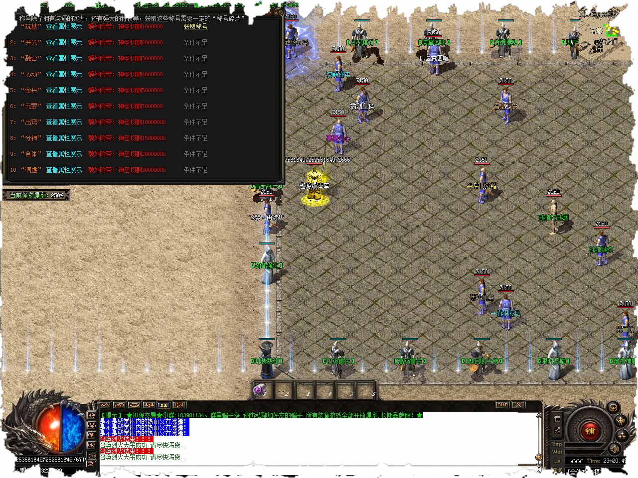 【游戏公告】本服新区第三天14-16点合区,晚上统一攻沙。 【游戏焦点】独家沙城奖励积分制,无论输赢,人人有份。 【游戏焦点】本服每天开放五个新区,保底万元广告,保证人气。 【游戏焦点】万元首爆奖励,万元装备回收,散人天堂。 【游戏焦点】新区千元首怪、首爆奖励,万元实物奖励等您来拿。 【游戏介绍】本服永久充值比例,1:3RMB点。五大赞助礼包,上线全部免费送。 【版本介绍】赞助大使 赞助大使称号奖励:爆率1.5倍 + 1.01倍攻魔道。 【版本介绍】黄金赞助 赞助大使称号奖励:爆率1.8倍 + 1.05倍攻魔道。 【版本介绍】白金赞助 赞助大使称号奖励:爆率2.0倍 + 1.10倍攻魔道。 【版本介绍】钻石赞助 赞助大使称号奖励:爆率2.5倍 + 1.15倍攻魔道。 【版本介绍】至尊赞助 赞助大使称号奖励:爆率5.0倍 + 1.20倍攻魔道。 【版本介绍】**爆率大礼包,爆率+500%+5000000神圣切割值+群体施毒术,快捷功能里面开启。 【地图介绍】封魔帝都怪物刷新:小怪30分钟,主城BOSS60分钟,城主 黄金BOSS 120分钟,爆率:最新魅影套,幻影套,轩辕倚天剑,圣光寒冰剑! 版本地址