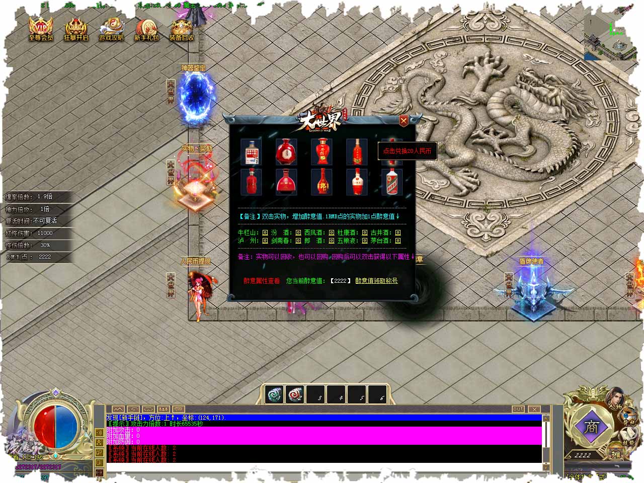 此传奇版本一共6篇章有等级就可以下所有地图,等级唯一途径打怪爆经验! 1:怪物分普通怪,地图专属怪,和装备专属怪,除第一篇章小怪外,所有怪物实物爆率 材料爆率 特殊爆率全是一摸一样,怪物从第三篇章开始,装备专属怪爆出的垃圾装备会少些,所以打金玩家前三篇章是打金圣地,任何怪物爆装备都是一地! 2:元宝累积消费本服在2亿左右,渡劫神石消耗在1万个左右,时装碎片消耗在5000-10000个左右,经验在100亿左右。本服投资和回报比经过反复测试相当平衡,投资万元以上的只要能进远古地图的大号,出永久回收每天保底在1000块左右!(反复测试后的结论) 3:打金攻略:打金要开个会员,狂暴,沙捐,会员回收元宝多50%,会员能直接下1-2篇章所有地图。包括隐藏地图前期打到的点卷可以升级切割,切割是按照装备切割数值成百分比的叠加,所以切割等级越高打怪越快! 4:起号攻略,会员,狂暴,沙捐,满切割,满称号,积分留着换加星卷轴,有多余的积分留着换时装升级保护符。无限收元宝,收渡劫石头,收经验珠,努力进终极篇章,终极篇章才是本服起号的开始。终极篇章一共5张地图,每个地图都有5-10个装备专属怪,打到部分专属后,再进远古地图,远古地图爆终极次终极神器,爆率相当可观。起号必升:称号 时装 渡劫 ,最重要的就是时装 时装加大量的血,次终极时装开始带百分比切割,你懂的! 5:时装攻略: 时装加打怪爆率,加打怪切割,相当有用!7级以上时装带百分比切割,时装最多爆到2级时装,2级以上时装需要再土城时装使者处升级,升级需要元宝,时装晋升符。升级时装有失败的几率,失败了时装直接碎掉,材料也会消失建议2升3,直接升碎了就碎了,3级以上时装建议用时装保护符,这样时装不会碎。时装最高9级。没一级的升级几率都一样,一切看脸!时装升级保护符可以用积分兑换,怪物也爆! 6:神器专属: 每个带两个五角星的怪都有专属装备,没件专属装备都有神器BUFF,需要神器碎片再土城开启,几率10%左右,一切看运气。 7:醉意值: 醉意值增加基础属性以及打怪伤害,前期有条件的可以回购实物醉酒满之后打怪也是非常快的,所有游戏内容各位自己体验。 版本地址