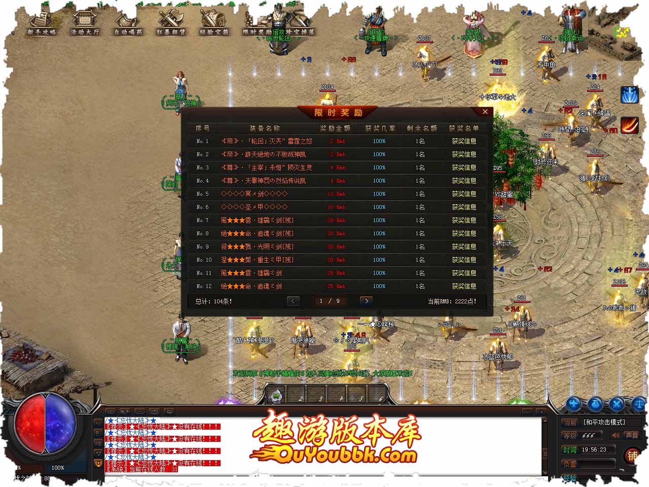 【版本介绍】本服群怪配置需要把自己血量达到600W以上就可群全爆所有怪,开始传奇人生! 【版本介绍】本服全爆以上怪物爆一切,爆不爆全部看运气,关于爆率本服没有隐藏爆率,更没有充值爆率 。 【版本介绍】怪物刷新时间:全爆怪20分钟,暗黑天荒60分钟,上古神王180分钟。 【版本介绍】散人上线进游戏送刀刀冰冻刀刀切割10W,领取QQ,即可无任何障碍打所有怪,前期打元宝兑换点卷升级切割,快速提升打怪速度。 版本地址