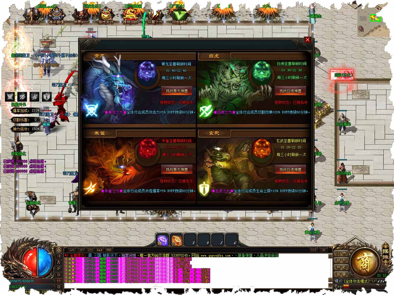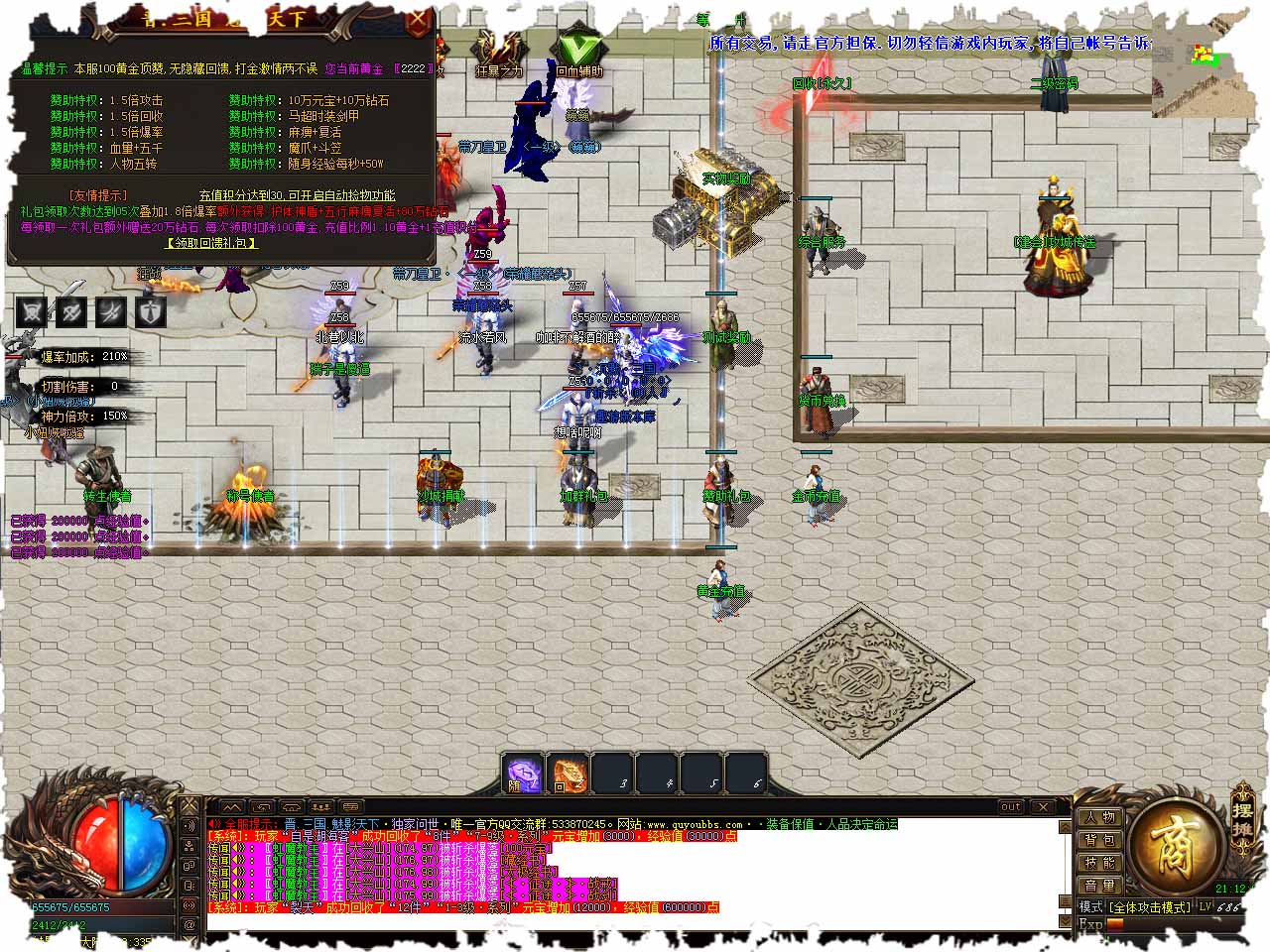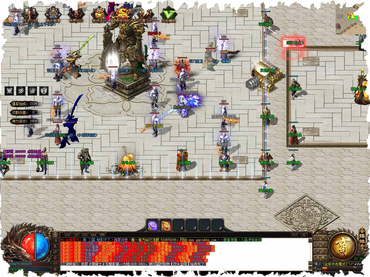 版本介绍:散人玩家上线领取QQ群礼包以后,立马到土城官爵领取第一个爵位~起步一个10会员,属性非常强悍,有专属会员地图!可直接爆到次终极。 版本介绍:沙城捐献300金币(1=10金币)人物防麻痹属性,1.3倍爆率、秒怪BUFF。 版本介绍:狂暴之力100金币(1=10金币)人物防冰冻,刀刀定身怪物功能,爆率1.3倍。 版本介绍:金币可开启狂暴,捐献系统,黄金货币为礼包系统,有条件的玩家把首富顶一下,专属地图爆终极,土城左边。 版本介绍:刀刀切割升级到满级称号,升级到武林至尊大约200游戏点左右,水晶之恋融合斗笠、魔爪需要=====怪物全爆。 版本介绍:藏经书提升技能威力 任何怪物都掉落,太极经书第一大陆等级提升NPC使用增加经验(前期基本靠这个来升级)。 版本介绍:普通等级丹1-100级升级突破用,BOSS掉落,打开背包有个快捷服务按钮,打开使用;高级等级丹1-120级升级突破用,BOSS掉落,超级等级丹1-150级升级突破用 BOSS掉落,稀有道具。 版本介绍:本服增加实物,永久回收每区回收的实物总价2666,爆率全部开启,一切看脸,测试期间打到元宝,钻石自动存档,开区直接100%领取不扣任何费用首PK首爆全部记录。 版本介绍:至于哪里打好装备,哪里打材料之类的,这些不是我来说的,是你们自己来摸索的。总之一点,怪物的年份越高,爆率越好!怪物年份直接看怪物名字即可! 版本地址