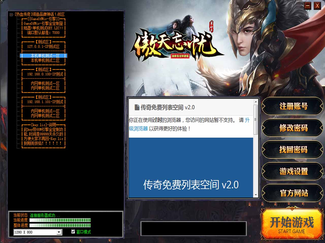 傲天忘忧单职业传奇免费服务端单机版本[GOM引擎] |
