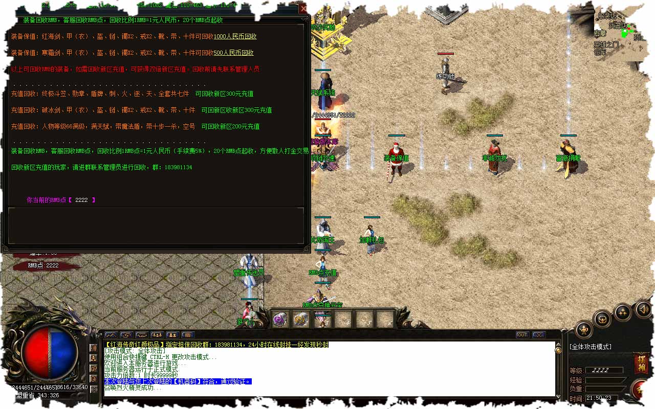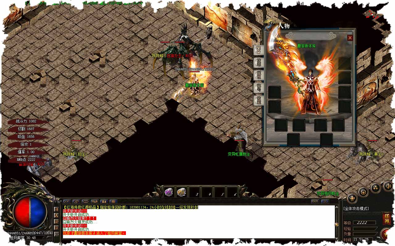 1.本服赞助为30元白金赞助,50元钻石赞助,100元君王赞助!人人都能玩的起! 2.前期建议双开,一个号砍猪升级,另一个号各个地图游走打装备,材料,元宝,BOSS打不完。 3.砍猪达到一定次数可以抽奖,奖品包含:技能书,升级经验,前期装备,前期特殊,超级会员证等。 4.本服地图超多,地图等级越高,爆率越高,地图里面刷新全BOSS模式.1000W血BOSS爆所有装备。 5.进入地图的机会,只能靠(地图入场券)增加次数,(地图入场券)每个怪物都有爆出。 5.高级技能,解毒术,护体神盾,魔法盾,十步一PK所有BOSS都可爆出,打不打的出看运气。 6.天赋系统分三种,生命天赋,胜利天赋,攻击天赋,每种天赋可强化1000次,功能强大自己体验。 7.每个装备附带的装备(星位)不同,鉴定的极品元素 附加属性 道道切割 这些属性都不一样。 8.装备等级越高,附带的原始(星位)越高,最高(星位)10星,由低到高。 9.有了装备就鉴定,这样能大幅度的提升你的打怪效率和攻击力,PK,抢BOSS绝对爽。 10.顶级装备可以兑换RMB,客服回收玩家RMB,20RMB起收,回收比例1=1点! 11.本服非快餐服,想半天或者一天终极的,请绕道!开区第三天合区,晚上统一拿沙。 12.玩家交易群:228382580,有事直接联系客服! 13.所有地图不定时刷新红包使者,击PK红包使者获得网银充值。 14.所有地图终极BOSS每6小时一刷新爆顶级装备,爆率超高。 15.装备保值:红海剑、甲(衣)、盔、链、镯X2、戒X2、靴、带、十件可回收。 16.装备保值:寒霜剑、甲(衣)、盔、链、镯X2、戒X2、靴、带、十件可回收。 17.高级回收:终极斗笠、勋章、盾牌、刺、火、逐、天、全套共七件,人物等级66满级,满天赋,带魔法盾,带十步一PK,空号。 版本地址