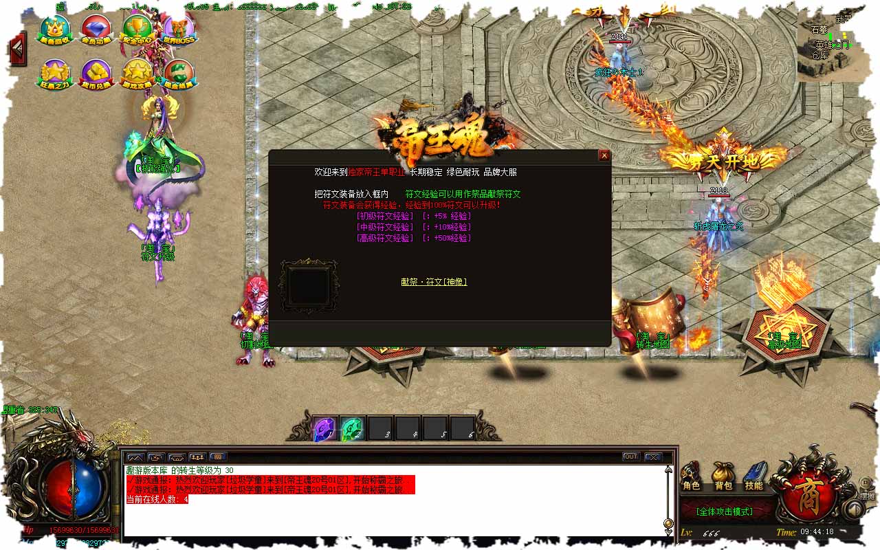 新手起步:0元打金玩法,上线领取免费会员转生加添加QQ群领礼包,领取大小神,直接打妖兽。 散人玩家:上线领取免费会员礼包 20捐献,+5元狂暴共计25金币,下图直接打怪。 中等玩家:20捐献+5元狂暴+20的时装,共计45金币 下图直接 土豪玩法:20捐献+5元狂暴+20的时装,然后抽奖,本服抽奖10次以上,属性相当给力,加倍攻,加爆率直接起飞。 游戏介绍:所有装备全能爆出,活动不要错过,大小神魔先天之体等,全部免费,攻沙拿红包,不给任何玩家待遇,GM不参与游戏。 版本地址