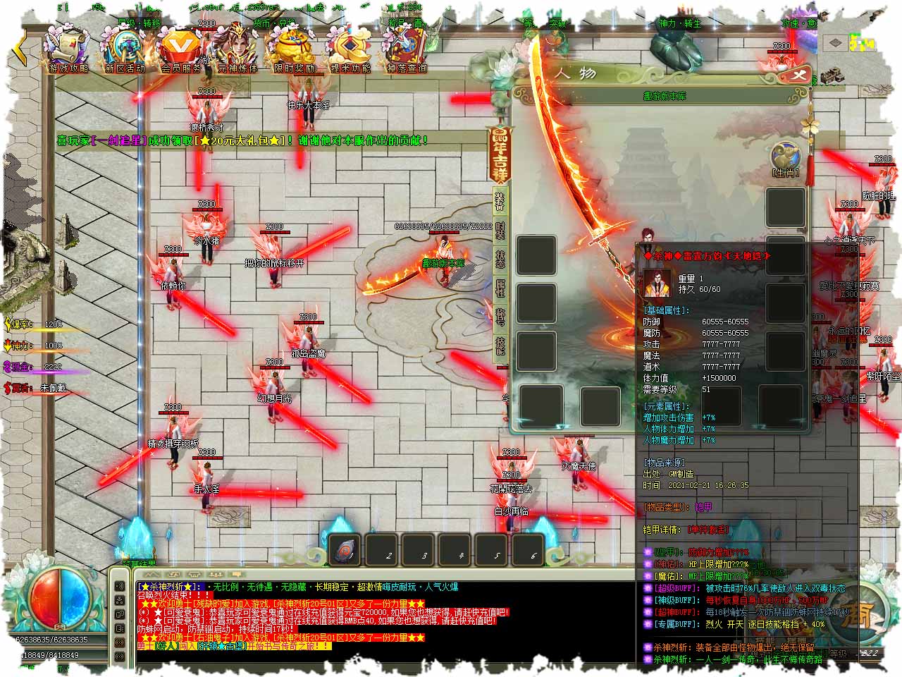 【版本介绍】无隐藏 赞助免费领 简单粗暴上线就赚 起步平等 散人一包烟 激情一整天 终极人人都可得 【版本介绍】独创打怪模式,全新玩法,调整所有分区爆率,激情耐玩! 【版本介绍】无会员 无隐藏消费 无赞助地图 光住满地爆! 【版本介绍】宠物-灵宠-仙宠-神宠-机甲-变异。! 【版本介绍】上百种宠物,需要玩家亲自捕捉,全凭运气。! 【版本介绍】本服采用顶尖登陆网关,定制插件,全方位封挂! 【版本介绍】每日重金广告投放,保证区区人气爆棚 本服遵守一切全靠打的宗旨,散人:消费22米.沙捐20米狂暴2米.依次进入相应的地图进行发展,装备,材料全靠爆!本服最新推出BUFF系统,几率使怪物复活,多打一些boss哦! 玩法不多介绍,前期打怪获得相应的经验丹,到500级,后下高级地图,BOSS多多,地图多多!装备+材料+账号保值+攻沙红包本服攻沙奖励超高,攻沙激情!人山人海! 【等级地图】:每个地图都刷各大boss ,优先进入发展快 ★★★★★★40亿血量以上怪物,爆一切,所有一切全部看脸★★★★★★ 攻沙标准套判定细则:所有区 必须严格执行 我们会定挂规矩· 1:行会收人标准:次终极套首饰剑甲及以上,获得破复活属性,转生等级23转. 510级获得无上天人的满等级称号和牛逼属性,满足这些条件的,所有帮会一律不允许拒绝收人! 如果出现故意不收人,一心私吞沙捐的,取消攻沙奖励! 2:入会标准达到不收人的,出现大号一边倒的,无激情,将取消攻沙奖励! 留区延后发放!! 版本地址