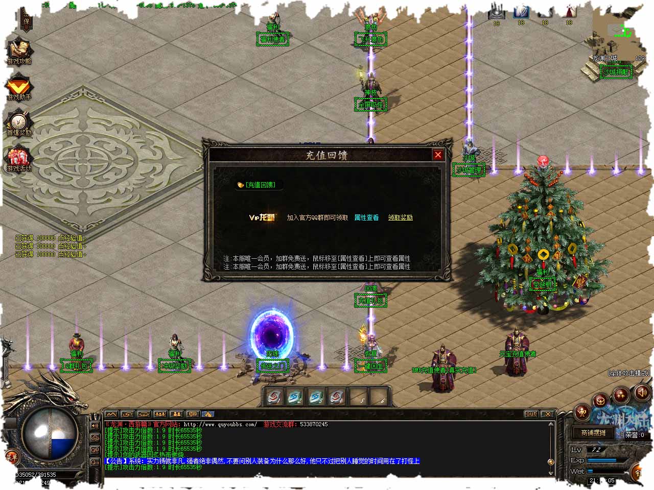 本攻略是大概讲解游戏内容,具体玩法核心部分还是在游戏内体验 上线先领个群礼包,礼包码在群内有说明! 新人上线可以先去野外森林,葬神石墓等新手地图发育,装备拾取都会有真实伤害鉴定! 身上随便打点垃圾首饰即可进入到高级区域[恐怖丛林],恐怖丛林内有四个隐藏地图具体走法群内查看地图介绍 游戏助手可以开启自动吃经验宝箱,混到九十级,1000点攻击就可以去遗忘之城,游戏也就正式开始了 进入遗忘之城打小怪会爆[遗忘之城の信物]收集了10个就可以激活遗忘之城的守护称号,会加爆率和真实伤害 等有回血了和一两万的血量就可以打复古类的BOSS,爆率很高会掉落充值红包,打开会获得元宝,前期发育必PK 遗忘之城内有四个异次元空间,异次元空间坐标打开小地图看,地上会有专门的光圈标注起来,很好找 等你有了100级和6转之后就可以进入静寂之城,前期需要跑通道进入,到了静寂之城之后有了信物就激活成就,以后就可以免费传送过去 静寂之城开始怪物攻击会变高,这个时候你就要有一把转生或者专属的武器发育起来就会轻松很多,1转开始武器就附带吸血属性了,当然捐献玩家可以无视 本服BOSS种类很多,见怪就打肯定不会错,时间就是金钱,效率就是金钱!!! 静寂之城开始就是各个地方的种类的专属区域了,每个专属区域都会爆出自己区域中的专属物品! 到了2大陆建议就在野外打或者去丛林迷宫里面的地图,怪物比较温和,等混得好了再去火影和瓦罗兰大陆 野外丛林里都会爆出一些高级的装备复活技能强化等,等你混好了,就可以先去勇者大陆里面发展了 专属区域的走法在群内下载地图走法就可以看得到,写的很清楚! 专属区域的爆率:勇者大陆,可以爆出高级衣服武器,专属衣服武器,转生衣服武器,各种特殊,倍攻手,魔戒等。 专属区域的爆率:精绝古城,可以爆出高级衣服武器,专属衣服武器,转生衣服武器,专属特殊,防毒素,倍攻手,彼岸花,魔戒等。 专属区域的爆率:艾泽拉斯,可以爆出高级衣服武器,专属衣服武器,转生衣服武器,专属特殊,天灾军团套,神力项链套,倍攻手,魔戒等。 专属区域的爆率:红土大陆,可以爆出高级衣服武器,专属衣服武器,转生衣服武器,专属特殊,BUFF卡片,各种霸气,爆率特殊,倍攻手,魔戒等。 专属区域的爆率:瓦罗兰大陆,可以爆出高级衣服武器,专属衣服武器,转生衣服武器,专属特殊,防冰冻,攻速鞋,打野刀,倍攻手,魔戒等。 专属区域的爆率:火影世界大陆,可以爆出高级衣服武器,专属衣服武器,转生衣服武器,专属特殊,防冰冻,BUFF卡片,PK神装,全属性装,魔戒等。 重点!!!!!! 新人到静寂之城之后不要乱跑打怪,前期推荐去勇者大陆,那里怪物比较弱,再去精绝城再去艾泽拉斯 重点!!!!!! 打怪的时候最好能凑到一套生肖,打怪有麻痹效果,或者凑一套天灾套再去找BOSS打! 充值玩家攻略: 普通玩家充值一个100元的礼包,会送回收加成,倍攻,爆率,真伤。开狂暴加大量血,捐献会加额外吸血和爆率,长期玩的最好再买个攻速+跑鞋(总共花费80RMB+100元宝) 领完之后去地图就用积分兑换[伪]求道玉,前期随身泡点升级。等级拉起来了去领取冲级奖励,会送吸血武器和高防衣服前期过渡很重要! 元宝拿去合成时装和点称号,这两个前期加血加伤害也是很重要的! 有条件的老板就冲个600,有送六百积分,直接兑换魔界金币开启骑士团(骑士团可以直接点满),多的积分换求道玉泡点升级 骑士团会额外增加大量全属性,生命值,元素,真实伤害,直接点满。。打怪速度全部拉满屌的不行 游戏积分还可以兑换强化卷,强化卷用圣诞福袋也可以获得,所以不是很必须用积分兑换的物品,实在急用可以兑换 除此之外无任何积分消费,无任何必须充值的地方,无任何充值才能进的地图,保证所有物品公开公正爆出! 新区还有100多页现金首爆奖励,越早充值越早回本,所有限时永不关闭,打完为止! 版本地址