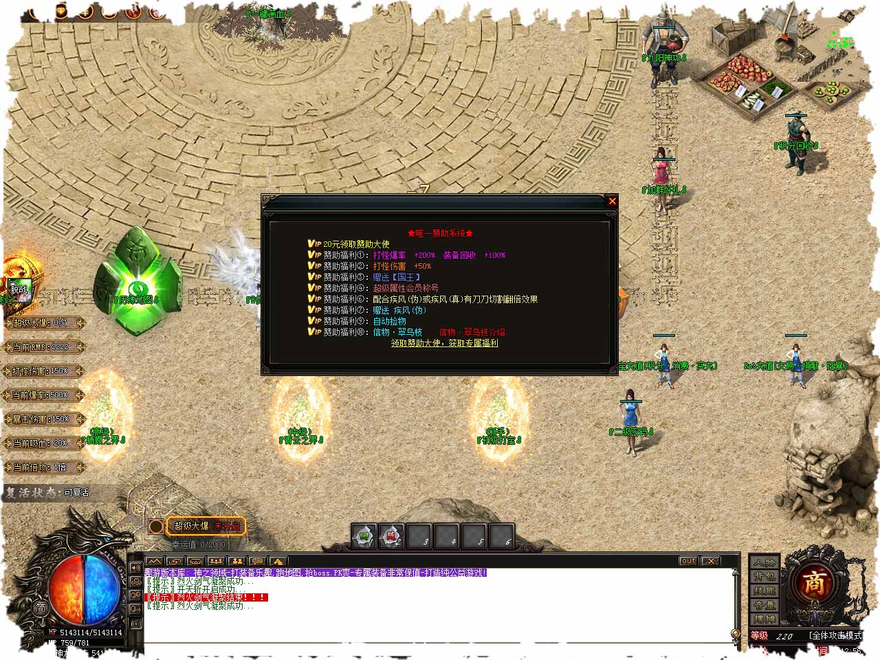 【官方网站】给您自己一个机会.,豪横,还您一个儿时幻想当大侠的机会.. 【官方网站】给我们竭诚为您打造的武侠梦一个机会,开战。 【官方网站】满回馈礼包20,全新玩法持续更新,无忧捡取回收,让您事半功倍。 【官方网站】全面开启所有爆率,光柱掉不停,独家九阳系统,神之的配方,不一样的味道。 【官方网站】稳定长久,拒绝跑路,充值比例1元=100游戏点,1元=100积分,10万元宝。 【官方网站】所有BOSS高达几十只,刷不停,专属畅享激情超燃,独家超级大爆皆可享有。 【官方网站】百件装备永久回收,千件光柱拿不停。 【官方网站】限时奖励多多,每日沙巴克奖励,只等你来见证奇迹。 【官方网站】每日开启4个区 测试开放时间 一区10:00 二区13:00 三区18:00 四区21:00。 【官方网站】正式开放时间 一区11:15 二区14.15 三区19:15 四区22:15 统一3天合区。 版本地址