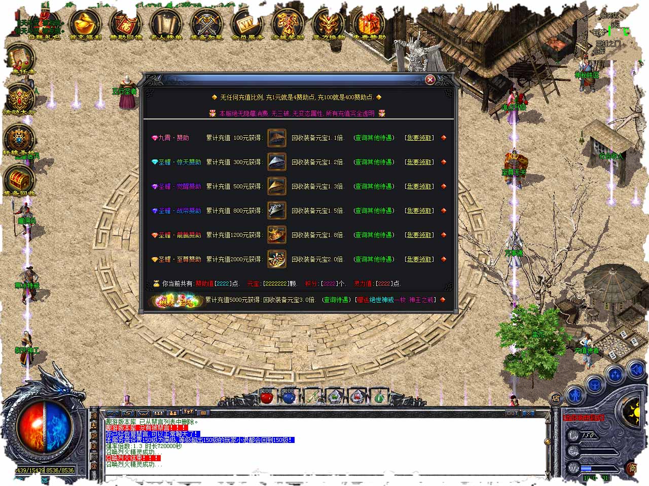 龙王仙剑·怀旧三职业正规授权,复古、公益、公平、公正、稳定。 上线赠送基础技能,PK打怪更刺激,激情,120级可在土成免费学习四级技能。 新人可传送到石墓升级打怪,很容易掉落菩提,无尘,芙蓉,玄冥系列装备。 初级装备可去石墓七层打白野猪获得,巫月以及碧雪装备很容易获得。 通过亿事通使用绝密文件可进入迷失探险,可轻松获得聖龍与迷失装备。 万事通广播公告有祝福广播可发全服公告,让玩家更容易喊话收装备。 至尊仙剑经典转生最高10转,每转赠送相应转生装备以及属性点。 任务装备属性更强悍,大力推向免费玩家,即便不花一分钱也可以站在战场的顶峰。 80级玩家可在万事通特殊传送狐狸 冰原 枫叶 秦皇打宝.也可去白银会员挑战BOSS地图。 怀旧魔罗装备全面改版,属性强大媲美高级装备,可进入魔罗圣殿,血色城堡内获得。 召唤骷髅只可召唤1只,50级召唤至尊炎龙,80级召唤至尊恶龙,120级召唤洪至尊神龙! 本服公司运营,长期开放,不出售任何装备,让你回归纯绿色传奇。 版本地址