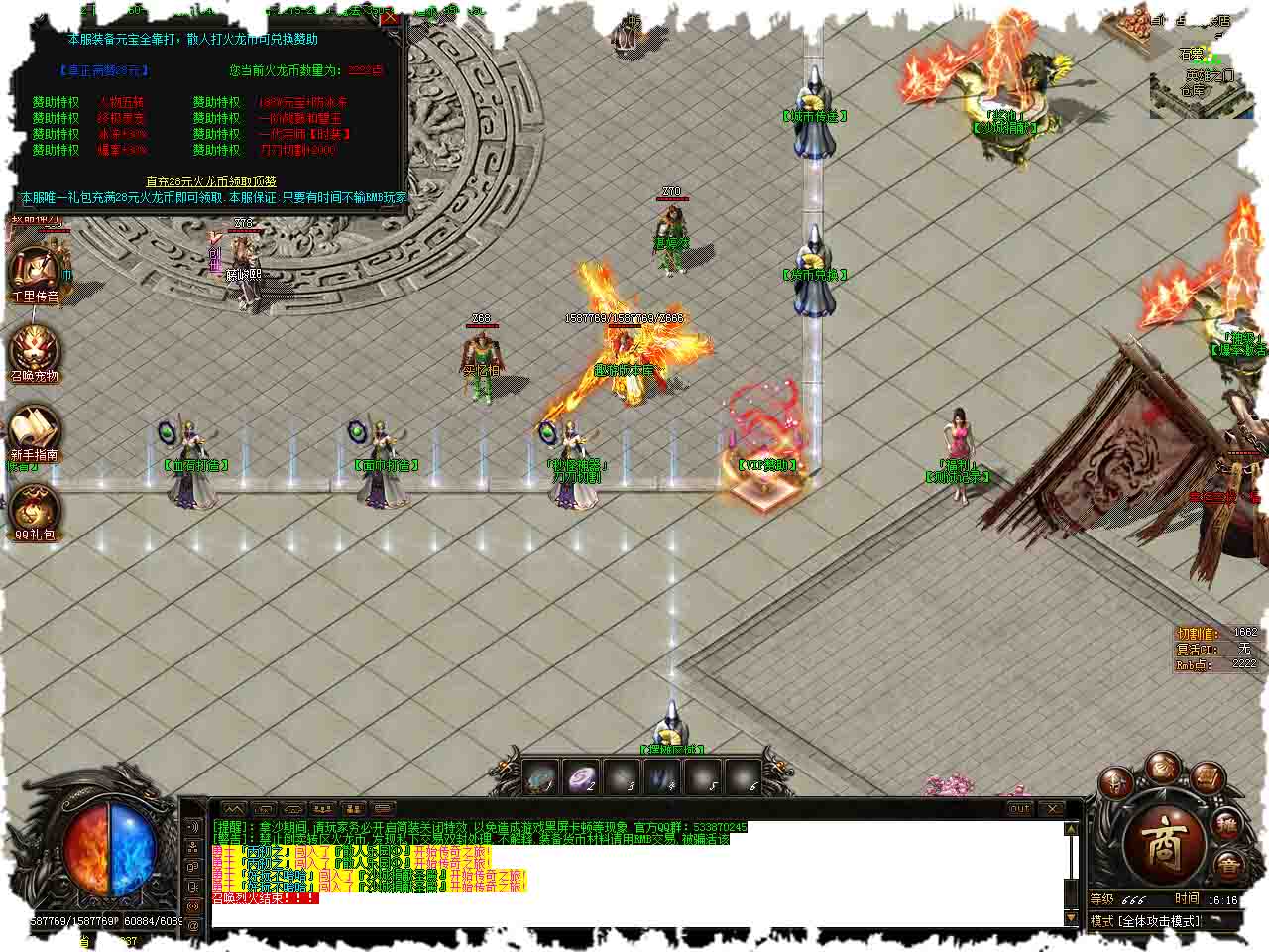 【游戏介绍】:>创世火龙II攻速激情打金单职业传奇版本-带假人-光柱-挂机-自动捡取-自动回收。 【游戏介绍】:>2020创世·火龙复古单职业震撼来袭>注意:此版本需要esp插件。 【游戏介绍】:>本服“沙城捐献”称号30游戏点,28领取VIP赞助、无任何隐藏礼包。 【游戏介绍】:>火龙币充值1:100、福利空投、马拉松活动均可获得。 【游戏介绍】:>随身泡点可升至90级、经验宝箱、装备分解可快速提升等级。 【玩法介绍】:>上线领取QQ群、微信礼包、初级地图发育至五转即可进入二大陆。 【玩法介绍】:>本服所有怪物掉落火龙币、只要有时间、终极不是梦。 【玩法介绍】:>土城右边沙城捐献可获得强大属性,快速发展。 【土豪玩法】:>升满切割,称号,时装,特殊前期称号地图或时装地图发展快人一步。 【土豪玩法】:>条件允许可进入通天塔闯关爆率高 通关更有丰厚奖励。 【温馨提示】:>每个地图都有专属BOSS爆率高,装备精华 经验宝箱后期消耗巨大。 版本地址