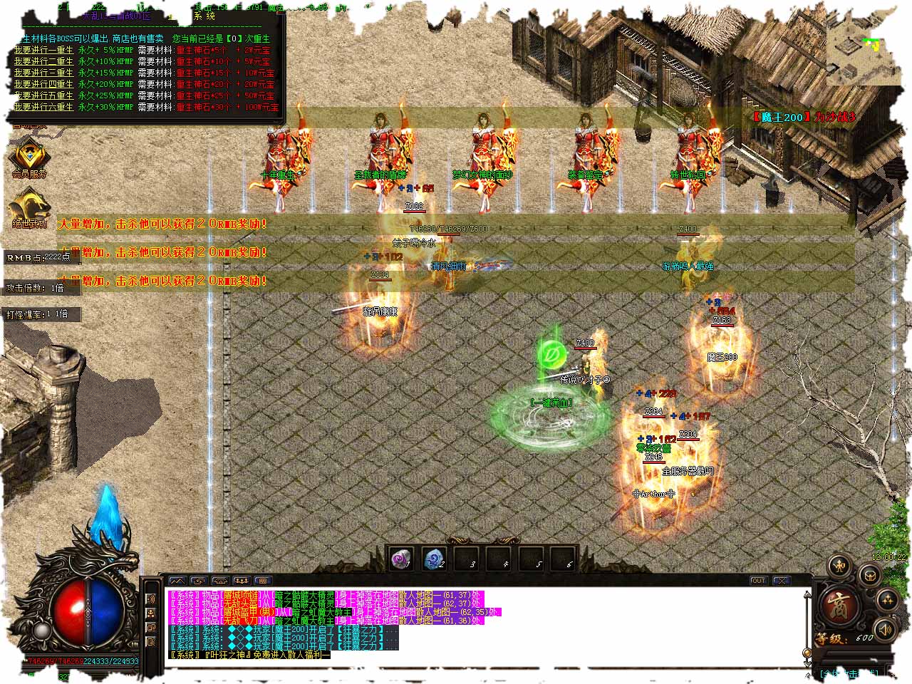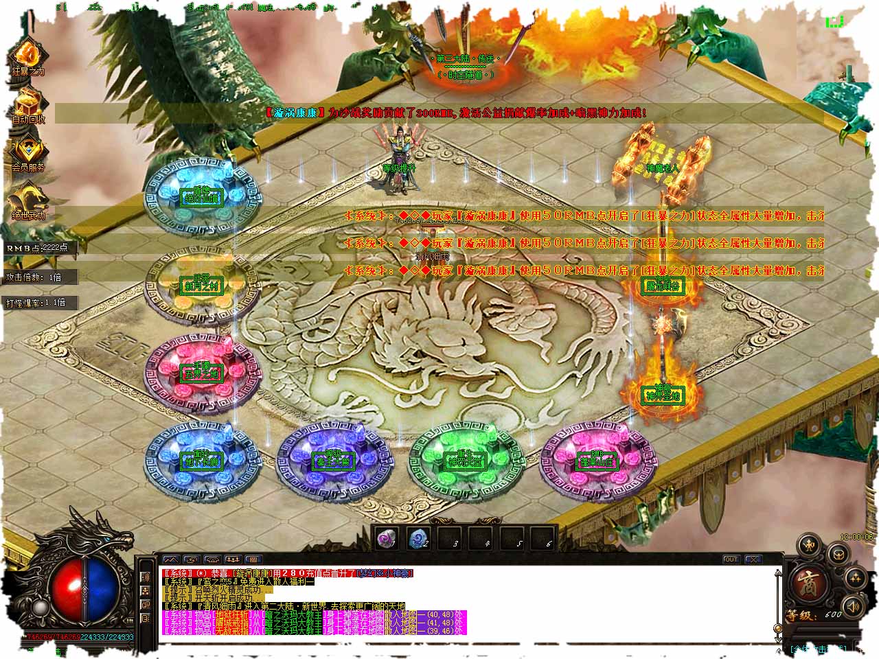 【版本介绍】本服爆率永久开启,合区不关爆率,请各位玩家放心游戏。 【游戏说明】全新体验独家PK神·天下大乱·BUFF版本。 【游戏说明】每日多区,以登录器为准。 【游戏说明】新区第二天下午合区,晚上集体攻沙。 【游戏说明】装备全部靠打·充值靠打·散人激情无限,区区火爆·打造全网唯一良心服。 【版本介绍】天下英豪 文无第一 武无第二 当你修炼的武功突破到一定境界之后任督二脉可自动打开 人物属性可以再次提升,直至提至10重巅峰状态。 【版本介绍】每次提升成功率为50% 每增加一重,等级提升一级,血量提升100000 升级失败则无任何变化。 【版本介绍】RMB点渡劫飞升消耗材料:RMB点+神卷*+重生神石*<$STR(N$神石基数)。 【版本介绍】仙魔之体:成功释放了天魔之体获得暴击+30%忽视防御+30%爆率提升+100%。 【版本介绍】本服承诺装备非常好打,散人轻松终极,终极玫瑰神一样的存在!同时可以在相应的NPC处合成绝世类装备哦。 版本地址