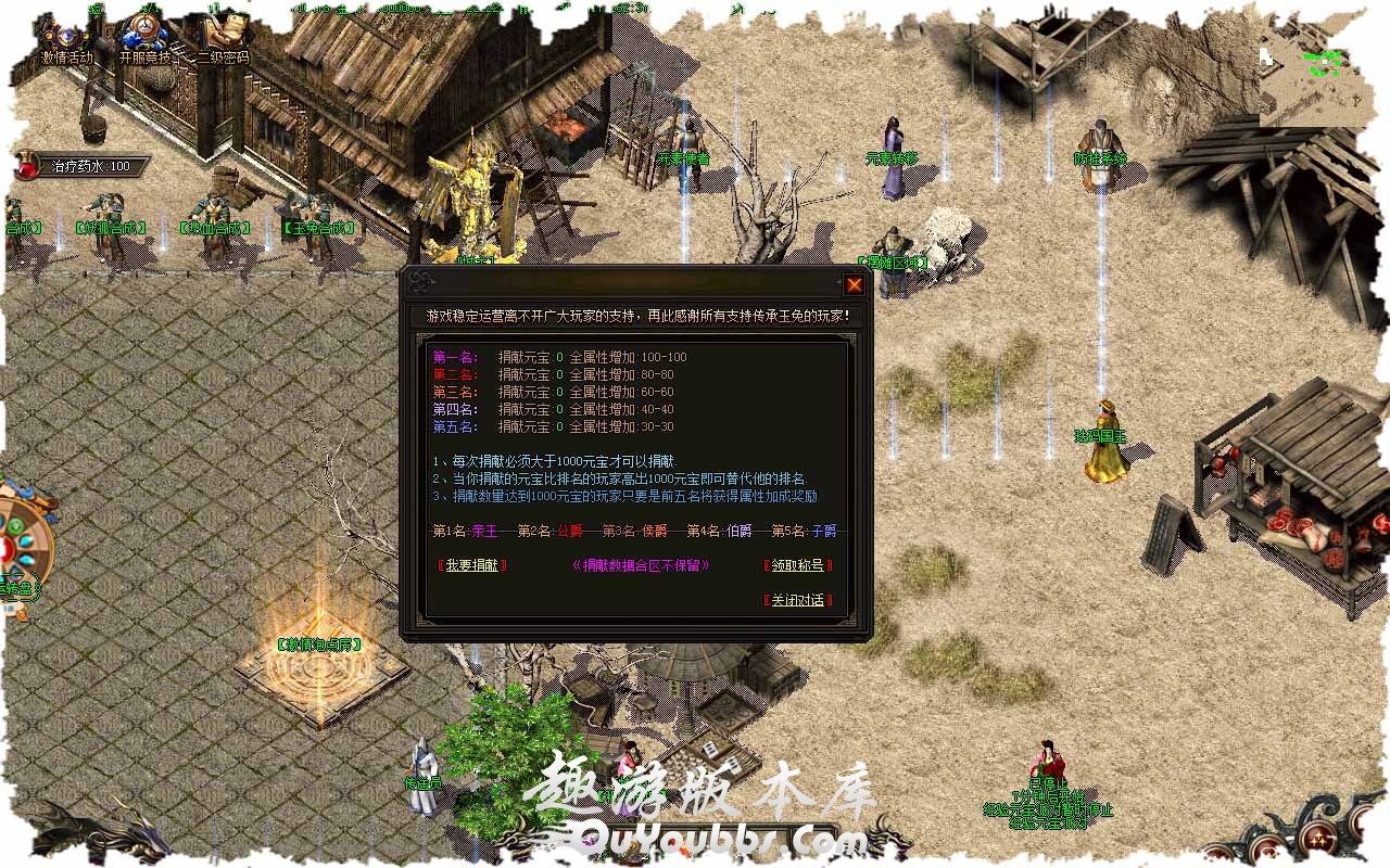【补丁大小】:无补丁,6个PAK补丁二次加密,测试客户端:17周年纯净端。 【版本介绍】:独家1.85传ㄧ承ㄧ玉ㄧ兔ㄧ元ㄧ素,2020年度独家新版,震撼问世! 【版本介绍】:1:5000元宝 一律走冲平台,无任何比例。 【版本介绍】:本服每天6个区,海量广告宣传,保证人气火暴!后期装备绚丽,新怪物新地图高暴率高回收。 【版本介绍】:本服高暴率,高回收,在线回收装备,散人免费玩家也能拥有顶级! 【版本介绍】:终极装备真是可爆,地图多,活动多,装备好打,福利怪多多,草根消费,杜绝内服! 【版本介绍】:可以首冲50。领取一个大礼包,70级等级卷+会员卡。各种技能奖励,可以更好更快的发展! 【地图介绍】:冲累计满88。可以去首冲地图打,爆率十分可观【十二生肖、战魂碎片、积分】,传奇、玉兔、热血基本狂爆,作为前期发展的十分重要的一个战场,很值得发展噢。 【地图介绍】:冲满100元。可以领取75级等级卷+四级技能。【还可以领取以上奖励】当然更好更快发展了。 【活动说明】:合区后开放【极品血灵】药包 HMP+300 ,新区不开放此药包。后期高级地图打怪PK必备。 【职业介绍】:作为散人玩家发展。首先挂一个战士,然后一个道士。道士68级左右打元宝速度前期比战士更快。 【攻沙奖励】:新区第二天拿沙后合区,奖励150万元宝,合区后拿沙奖励100万元宝。 【重要提示】:关于86级冲级比赛奖励,第一次合区后保留,没有领取到的可以有机会领取,第二次合区后取消。 【道士宝宝】:【中期混一个热血满元素套】就可以去更加高级的地图挑战了,完成转身十五转身【奖励热血衣服武器】的喔。
