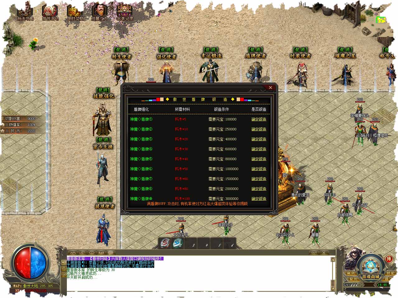 [冥府地宫]进入等级:100级,进入条件:1000000元宝。 英雄不问出处,少侠请多行注意,进入冥府地宫,100级+1000000元宝。 傲世神器特色:用心雕刻每一处细节回报玩家,地图全部为散人开放。 [进入地图失败]:您的元宝不足1000000颗,请继续努力!您的等级未达到“100”,无法进入地图! 重生属性介绍:血量低于0时,10%的几率将获取重生,人品好可连续复活哦^100个重生碎片+英雄的象征[重生]+200万元宝[失败将扣除材料]。 普通进入新手地图进入条件:满称号进入满称号打宝地图,英雄不问出处,少侠请多行注意。 进入条件:五转进入,狐宗之地打宝地图],英雄不问出处,少侠请多行注意,如果您不是满称号玩家,不能直接传送过去! 附魔介绍中级附魔合成需:初级附魔*5+50W元宝。 特殊四格原本自带强大的属性,但是由于四格的特殊性,我可以帮你再次升级。 英雄的象征[重生] 最后的轻语[体魄] 冥界的咆哮[恢复],比如强化英雄的象征[重生],则需要图腾碎片200颗。 锻造条件:相应的材料200颗及人民币50颗,需要人民币100颗,强化鉴定请放入可强化装备,每一件装备可以强化5次,成功几率50%,失败扣费用,请谨慎操作。 版本地址