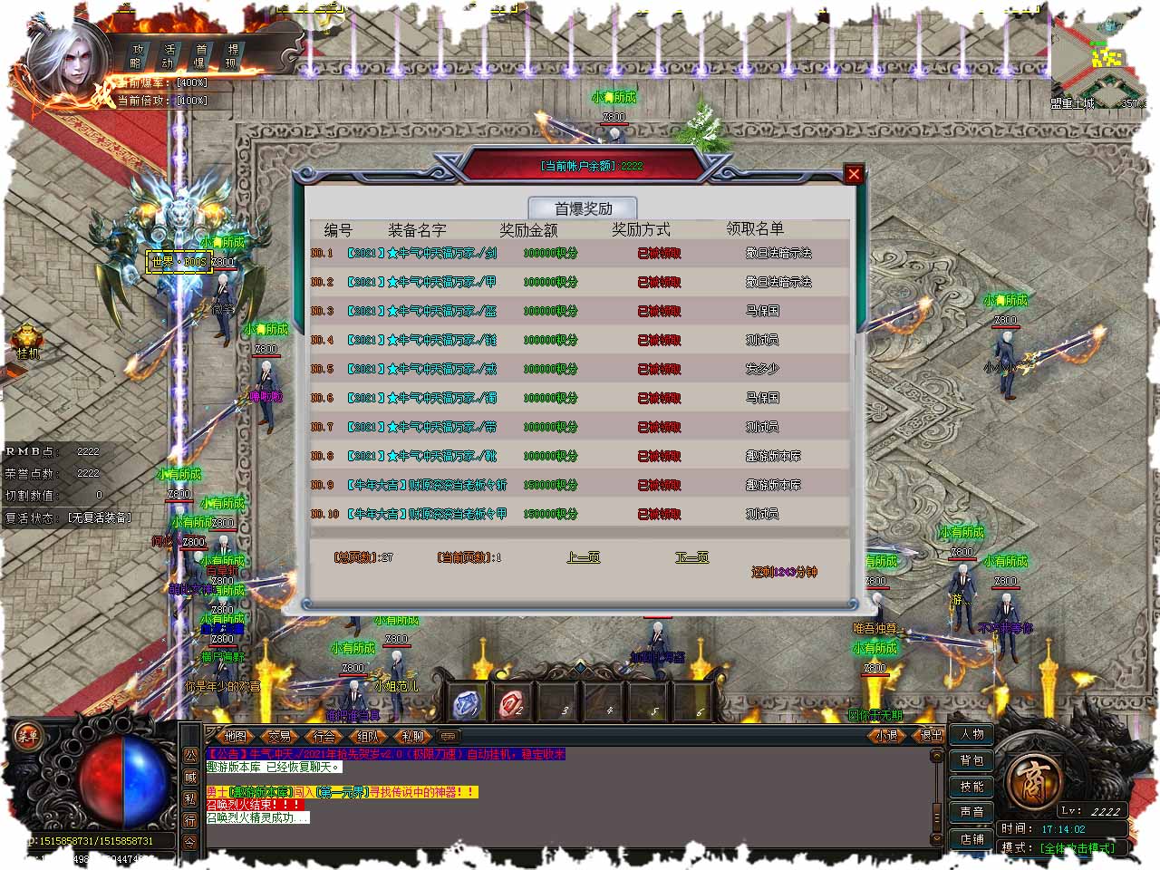 【补丁大小】4.27GB,PAK补丁全部一次加密,测试客户端:17周年纯净端。此传奇服务端自带假人系统,清档之后假人自动上线。