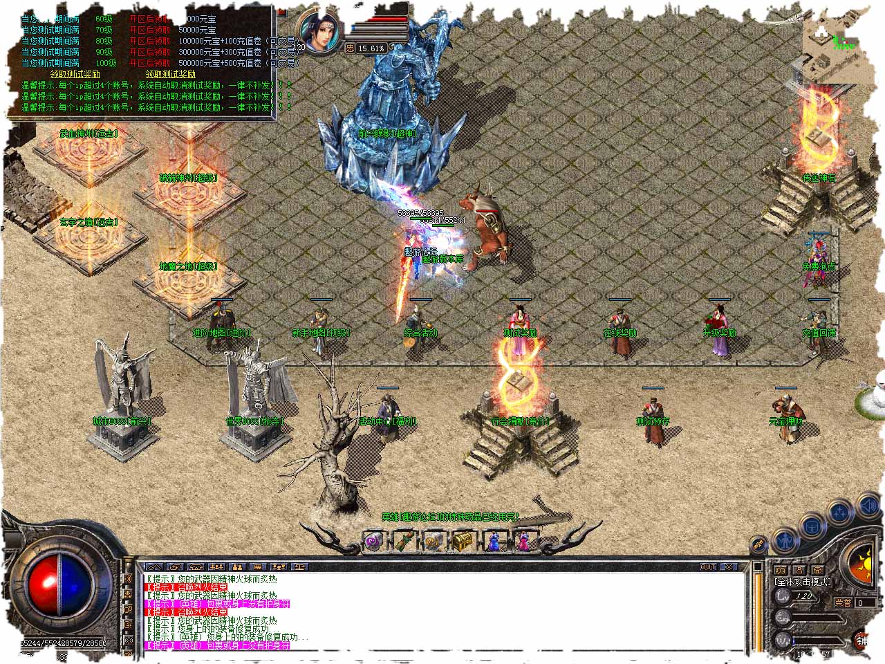 【版本介绍】:180前兴合击第一季首区-震撼来袭-最精品游戏体验。 【版本介绍】:2020年全新爆款合击 引领合击潮流 50元大顶赞 50元满回馈! 【版本介绍】:攻沙奖励多多,等你来领!前兴火爆合击等你来战! 【版本介绍】:终极爆率全开 赞助超级好打 玩法新颖!次终极回收! 【版本介绍】:18级以下的玩家可以拜35级或以上的玩家为师。徒弟等级升高后师傅会得到相应的声望值。 【版本介绍】:利用声望值可以到比奇领取荣誉勋章。徒弟35级将自动毕业出师。 【版本介绍】:比奇最大的城市就是你所在的比奇城,坐标就不用我说了吧!毒蛇山谷的小村很好找,你只要往500 500 的坐标走就能够到了。不过,如果你要到盟重土城,就应该牢记300 300这个数字, 他会指引你走到那里。离流放地很近的沙巴克,是一个危险的区域,我记得以前在600 300找到它的。不过我要提你,每个省份的坐标都是不同的,可别在比奇找沙巴克哦!所以,要记住每个通往其他省的关口。最后,要记得多跟朋友走走,你就会和我一样熟悉这个大陆。 【地图介绍】:木竹阁地图怪物:刷新本服所有BOSS!装备掉落:爆出本服所有装备一切看脸!进入条件:充50+20W元宝或100级+20万元宝!! 【活动介绍】:进入【盟重土城】争抢世界BOSS,爆率之高难以想象,赶紧去抢怪吧!算好时间,需要玩家等级50级才可以进入,怪物爆一切,爆率之高难以想象。 版本地址