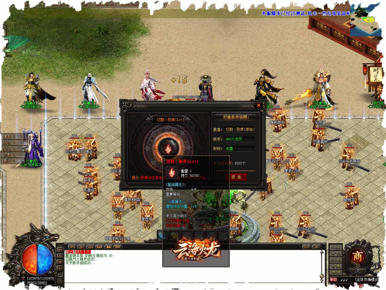 云海火龙首战区游戏详细攻略:(无老区,首站)。 本服一共2个大陆 独家版本,无比例,无待遇,无团队,请免开尊口谈比例。 新区活动:每个新区特此奖励1880红包,点开活动按钮,可方便查询本区爆了多少红包。 【首先介绍下功略】 无充值玩家,进入游戏,领取QQ礼包码: 然后上线送 100%爆率+100%倍攻击 刀刀麻痹 刀刀切割 秒血切割时装。 进入散人地图 里面有★到★★★BOSS怪物。 怪物有必爆 赞助地图 捐献地图 狂暴地图体验卷 不充值玩家双击卷轴 可以进入消费地图体验。 80级地图 五转地图 均可以体验充值玩家效果 比充值玩家勤快 会跟充值玩家一样的体验效果。 本服打金IIII档:【1925火龙币+40金元】 风险指数:0风险 利润指数:★★★★ 3天预计利润:1000-3000。 这个档次,满切割,满赞助,满时装,等于是高阶级别了,云垂海立时装:**时装,高鞭尸几率,几率刀刀秒怪物血量200万血量,攻速+3。为老区,时装保值,特此开放6个小时以后不允许合成时装,官方永久回收188元金元。 版本地址