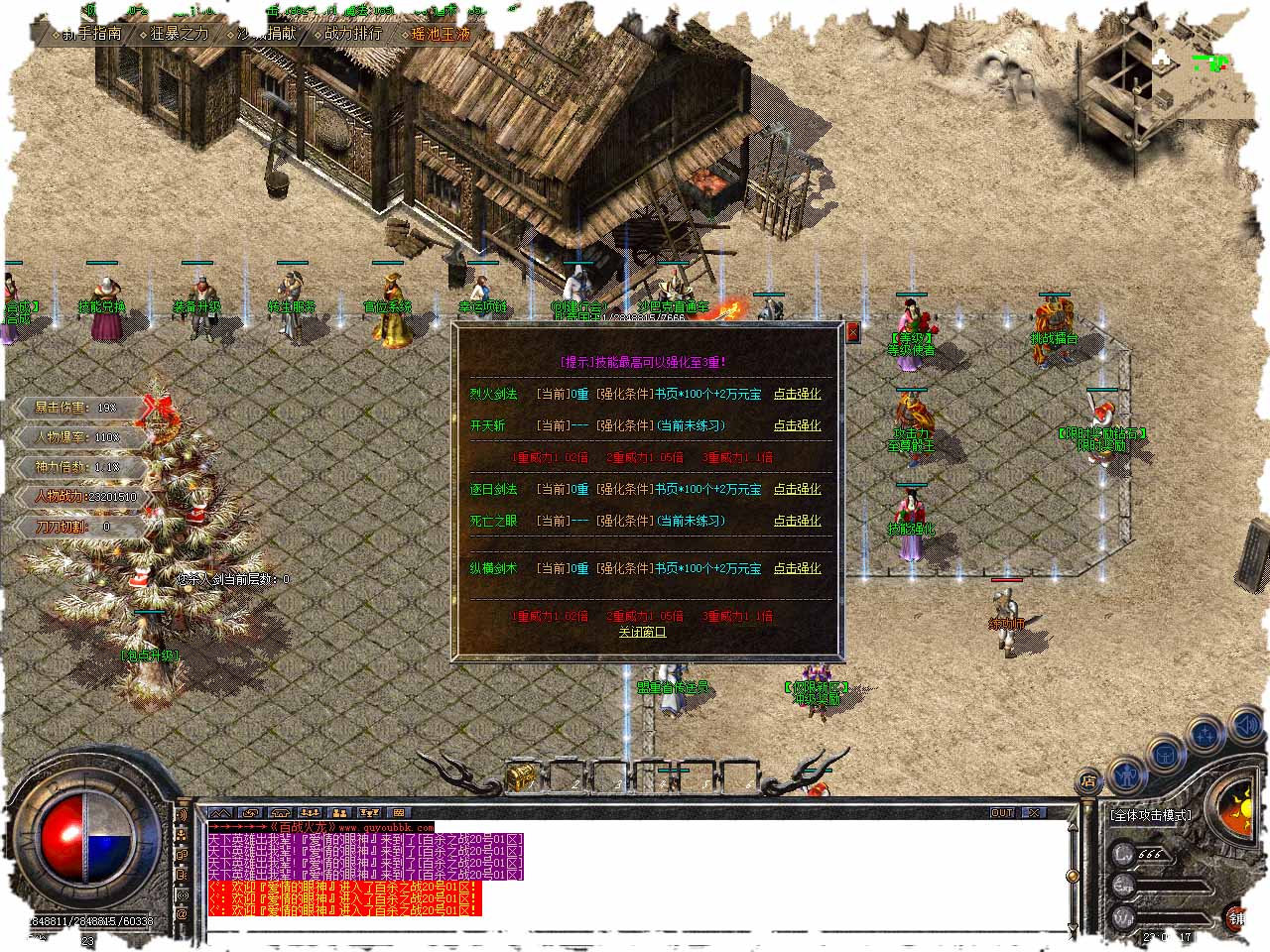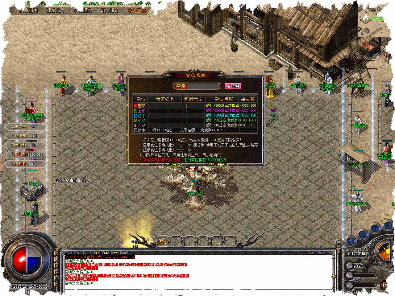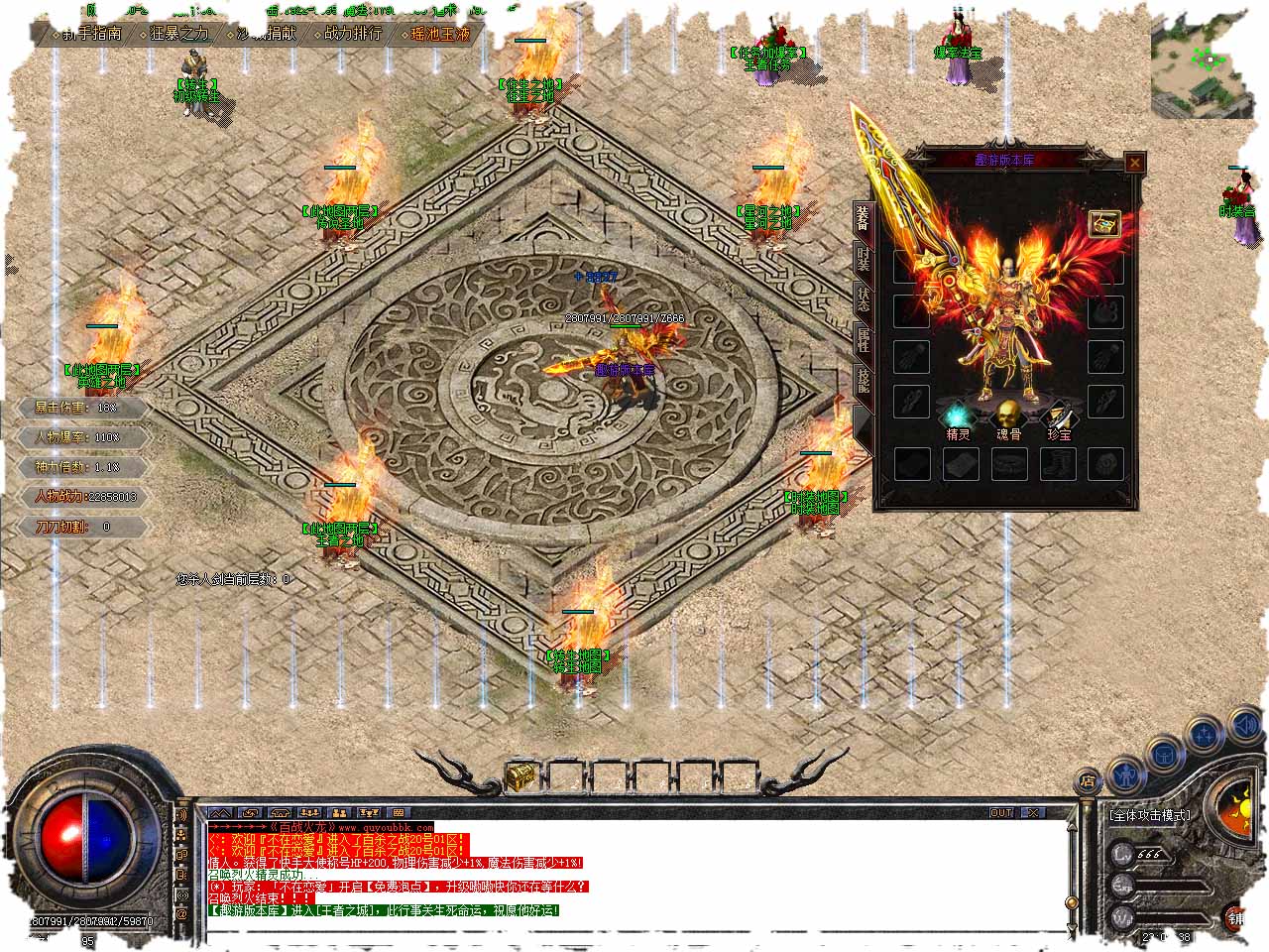 【活动时间】19:00-20:00(合区后每天举办) 【活动介绍】活动开始后战场内刷新1个空投宝箱,30秒内不可捡取!空投宝箱获得者只要在300秒内保住宝箱不丢失,即可。 【活动介绍】获得大量元宝奖励,活动奖励首次合区奖励10万钻石,老区每天奖励2万钻石。 【称号说明】灭世魔尊称号附带元素属性:人物体力+3%,灭世魔尊称号和PK次数每天0点清除,合区清除! 【封号说明】太乙封号需要:等级达到70级+200w钻石领取[9转]七彩名称+太乙真人封号。<太乙真人+冰龙之盾可领取,【百战之盾】(血量+100%,挂了不爆)。 【版本介绍】上古结阵是几百万年前先祖遗留下来的强力结阵,拥有无与伦比的力量,千百万年来,没有人能够启动过,它里面隐藏着什么无人知道! 【版本介绍】动上古结阵需要魔法神石1颗,(启动可随机获得100-500元宝奖励),当结阵每达到第188层时,土城药店将刷新1只上古恶魔·[结阵]。 【神力保护】开启人物头顶显示金色:先开启武神之力,才能开启神力保护,开启费用5点百战金钻! 【神力介绍】本功能仅限拿沙时间开启,拿沙结束后自动恢复普通武神之力! 【神力介绍】神力保护开启效果:[武神之力称号挂了不掉,PK者也无奖励]保护开启效果:[被打不掉PK层数,开启费用5点百战金钻! 版本地址