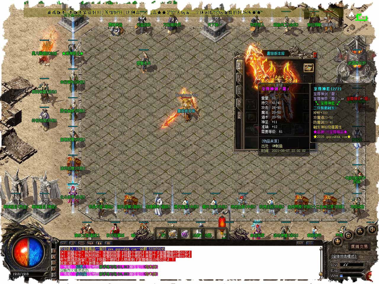 【版本介绍】:1.76至尊精品复古三职业传奇版本-打金天堂-爆率全开-装备保值。 【散人定制】:2021至尊精品为散人大服,为散人玩家专属定制。 【新闻公告】:爆率全开,无任何隐藏消费,暗坑,放心进服打金,绿色游戏公平公正。 【版本介绍】:所有装备一切全靠打,所有爆率全开,没有爆不出的装备,装备超级保值。 【充值比例】:本服充值经过精心配制,谈比例待遇的勿扰。 【开区时间】:每天4个新区,11.30点、14点、18点、22点、准点开区。 【关于爆率】:1W血以上的BOSS都爆精品,各大地图BOSS掉落,精品新衣,服爆率为1/40,精品赤月首饰爆率为1/10。 【版本介绍】:武器最高可升级7点,各大教主:爆精品屠龙 、精品嗜魂!精英神剑! 【开区模式】:每天三至五个新区,第二天中午合区,第二天晚上激情拿沙不断的开区只是为了积累人气,合区才是激情真正的开始。 【游戏版本】:本版本装备好打,等级好升,本游戏更新了防外挂系统,配合防外挂登录器封闭了市面上95%的外挂,请玩家放心游戏!执迷不悟者封号处理! 【版本介绍】:欢迎进入本服游戏,我们力争保证:公平,公证,公开,认真对待每一个玩家! 【版本介绍】:元宝比全:短信1:3000 其它1:6000。本游戏不设管理员,不卖装备,不调级,只出元宝! 版本地址