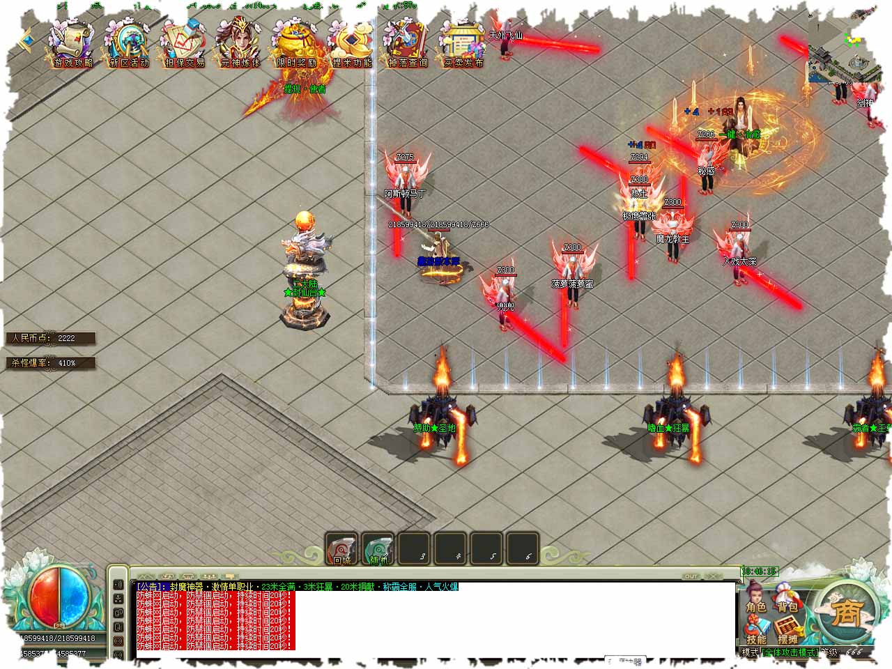 封魔神器--<-<-<@一季攻略 本服为半PK半打J版本,区区3000+回收件投放,回收件嗷嗷爆,时间证明一切。 【起号攻略】 『25米路线』20米沙捐,3米狂暴,2米超级回城石(保命专用),打材料做号,具体服里体验。回收件嗷嗷爆,25米也可做满! 『91米路线』20米沙捐,3米狂暴,20米时装(超级减伤,前期群怪必备)18米切割,18米称号,12米转生,本服所有消费,满好91米.回收件嗷嗷爆!~ 『土豪路线』20米沙捐,3米狂暴,货币兑换花RMB点兑换700w金刚石直升max切割,下榜图打怪,榜首地图刷怪和爆率统统是普通地图5倍!榜号属性超强,单挑无敌,叱诧风云,无人能挡!3000封顶。 版本地址
