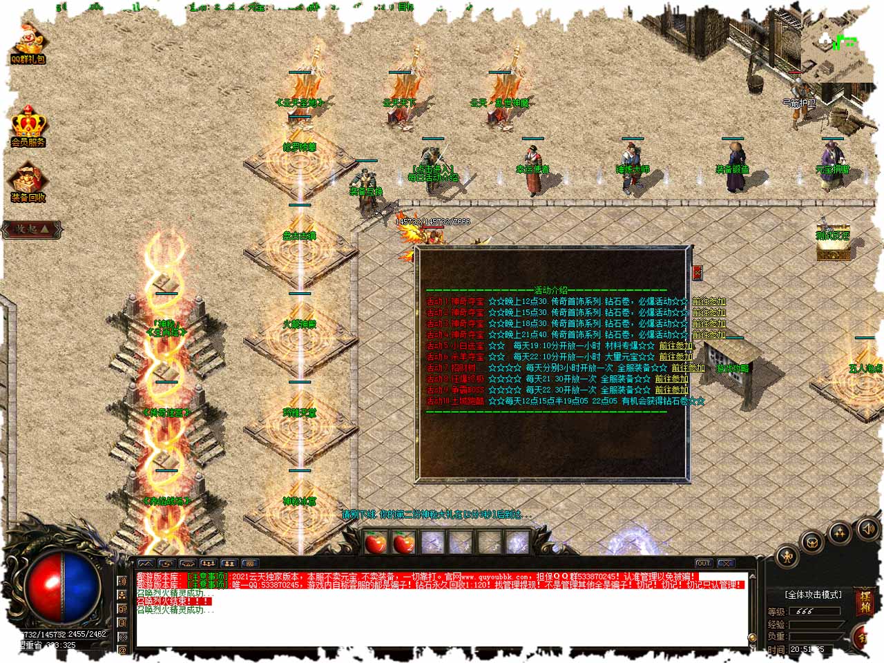 【版本说明】云天公益,全网最劲爆最火的第一品牌大服! 【版本说明】火龙全新版本来袭,降低门槛,人人能打到终极,散人路线!! 【版本说明】独家火龙三职业,散人能逆袭,只要有点时间照样玩起来! 【版本说明】所有怪物可爆终极,良心品牌大服一个字好! 【版本说明】独家订制封挂系统 还游戏绿色平台 公平 公正 公开! 【版本说明】每天2区稳定开放,装备全爆不锁爆率真实开放爆率!比例1:100 回收比例1:120! 版本地址