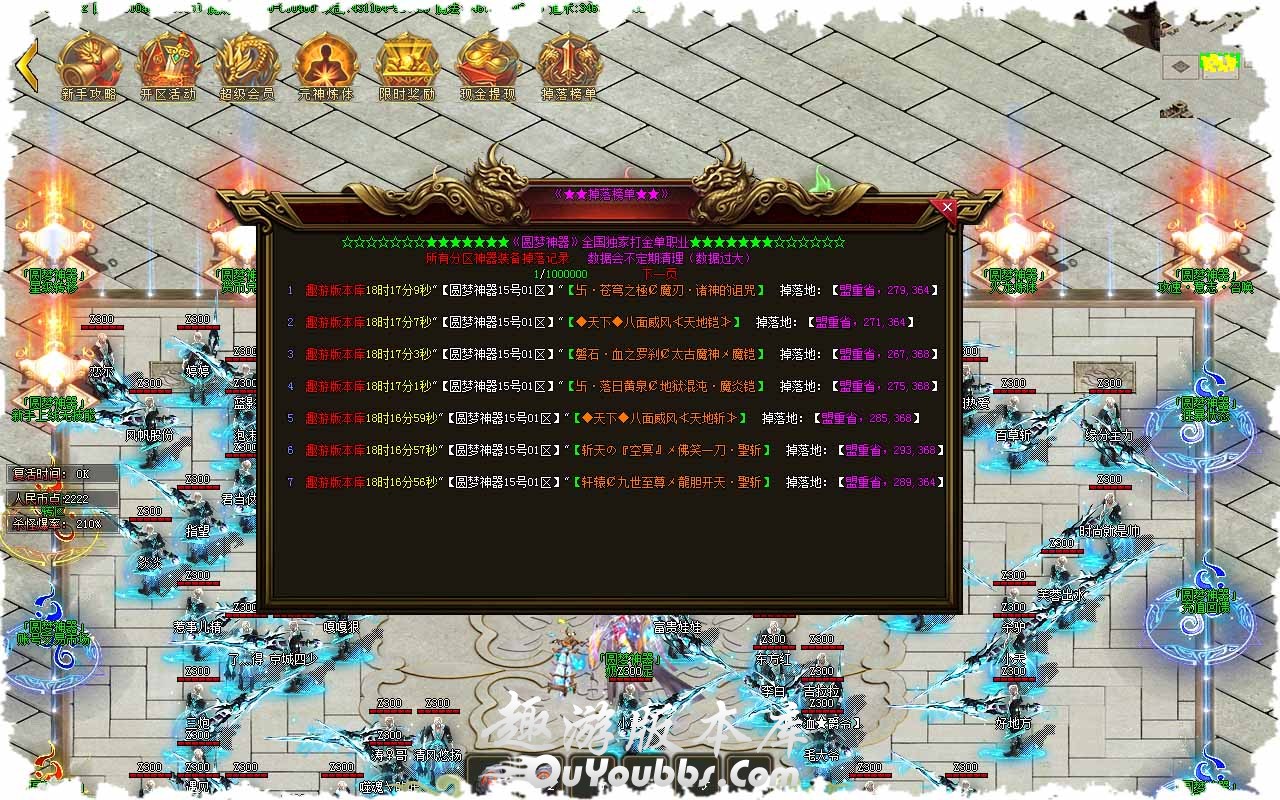 1.新人上线安全区泡点到250级,加QQ群 领取专属礼包 NPC关注有奖坐标 548 610。 2.上线可把新手首饰丢在地上拾取鉴定,鉴定后具有刀刀秒HP功能,关注后拥有刀刀麻宝宝。 3.本服有3种特色世界,每种特色世界都有3个城市大陆和隐藏地图、每个大陆都能打出终极装备。 4.转生,等级,爵位都拥有终极大陆,本服活动奖励非常丰厚,记得定时参加,可爆出终极装备。 5.切记,魔兽森林是本服终极BB的唯一产地,里面每3小时还刷新3只超级BOSS爆率超高,散人必守。 6.本服切割多样化,九星装备对人物,怪物都可照成真实伤害,打到就是RMB,切勿丢弃!。 7.散人玩法:先去新手地图打元宝,金刚石,装备,等级丹,转生材料,然后下高级大陆。 8.其它玩法:上线领取回馈礼包购买法宝,进行元神练体先去法宝地图打高级BOSS。 9.本服玩法多样化,分为不同的各种特色大陆,终极狂爆活动开区每小时刷新一次大量宝箱,宝箱可开出材料实物进入地图,地图爆率非常之高,更详细的攻略请在Q群里文件查看。 版本地址