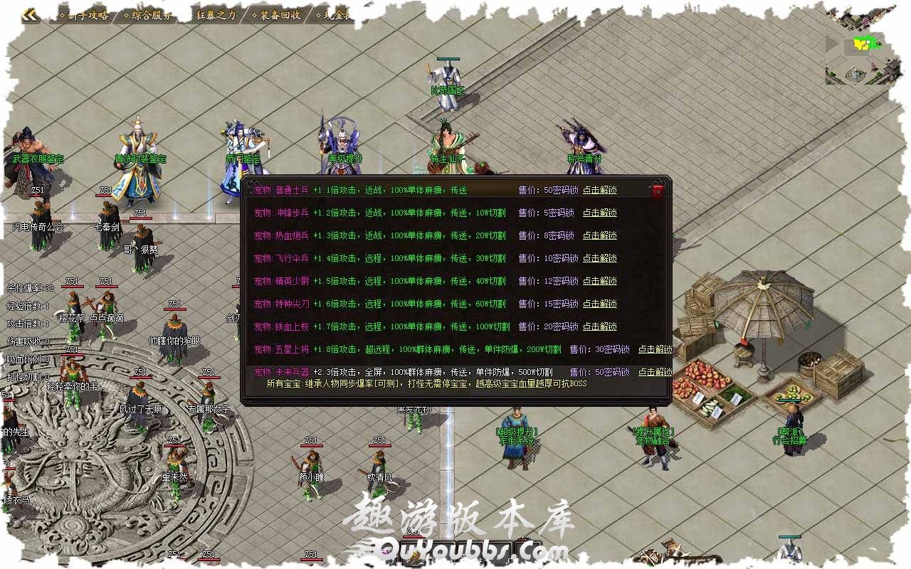 【版本介绍】真公益,全网最良心的单职业第一服,不卖元宝 一切靠打,冲多了都没地方用。 【版本介绍】本服元宝好打 版本耐玩 活动超多 爆率合理 永不关爆率 誓做全网最好玩单职业。 【版本介绍】本服沙城捐献(20) 狂暴之力(2) 再无其他必要的坑。 【版本介绍】半月弯刀等免费送,999级以上怪物均为专属怪!掉落对应专属!百种专属装备属性变态,BUFF繁多,详情游戏内查询。 【版本介绍】积分礼包(免费领取)可获得BUFF20%。 【版本介绍】沙城捐献(20) 加入可获得:切割 自动捡物 打怪超爽 捐献的钱全部进入首届攻沙奖励. 【版本介绍】老牌迷途技术团队,采用一流万元网关,强大PK模式技术,畅玩无忧. 【版本介绍】市场最顶级PK采用市场最好玩各种BUFF特效,不好玩直接退. 【版本介绍】迷途网络是一个14年底蕴的老公司团队,公司技术都是5年以上技术。 版本地址