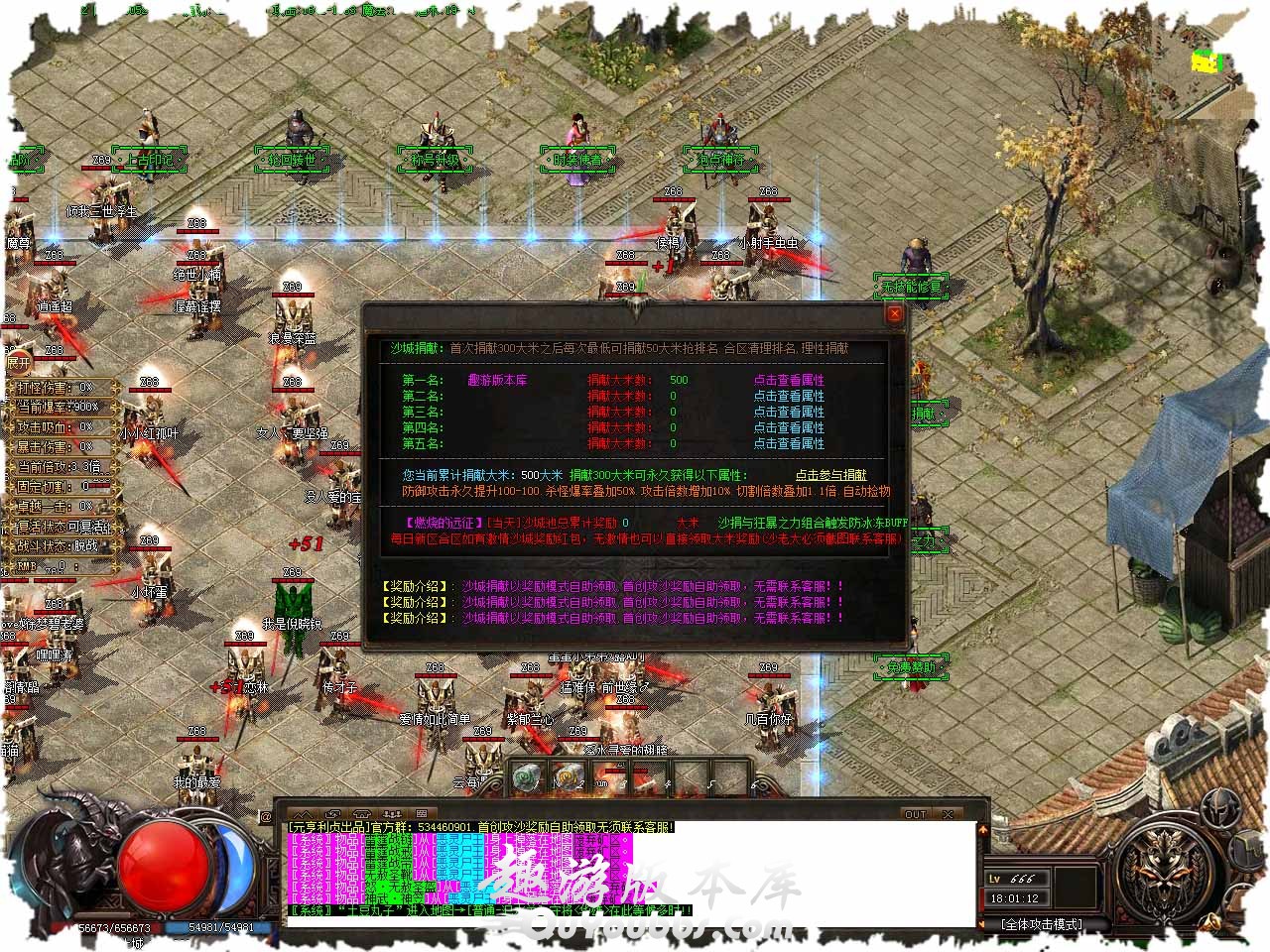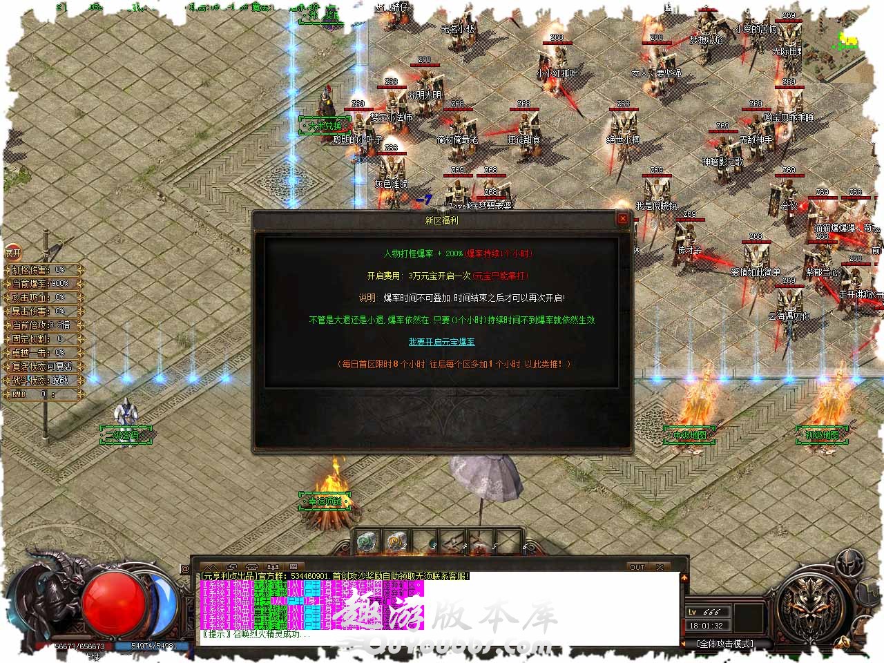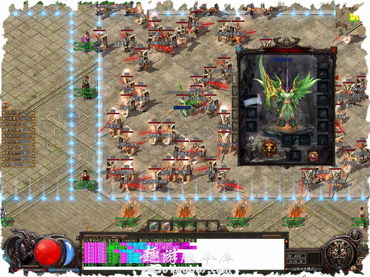 称号介绍:【当前称号】“唯吾独尊”【下级称号】: <“末日霸者”>【称号属性】⒈体力值基数+12000,⒉全属性+32%,⒊伤害吸收+32%,⒋固定切割+4000,称号证明 x30 + 15000 元宝。 转生介绍:二十一重转生,条件:转生圣石 x10 + 5000元宝,赠送:神力倍数 x1.40倍。 版本介绍:如果你觉得装备的附加属性不够强大,或者想尝试换成其他的属性,那么我可以给你帮助,我将随机赋予你任何属性但是我需要收取,50元宝,请将装备放入右边的框内。 地图介绍:地废弃古墓,此地图刷新白骨精灵、白骨战将、死灵法师,怪物刷新时间,小怪10分钟、BOSS60分钟,免费进入.12小时后关闭此地图。 回馈介绍:固定切割 + 10000、打怪爆率 + 200%、神力倍数 x 50%、攻击速度 + 100%、倚天辟地【全屏切割伤害20%】、启动资金88万金币、需要条件:200游戏点。 泡点介绍:一级泡点神符直接点进阶100万金币购买,暗黑·神符LV1[基础属性]:防御5-5、攻魔道5-5、生命值+1000(乘百分比血量)、[隐藏属性]:泡点经验+1000。 版本地址