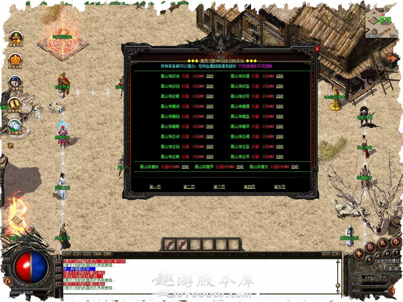 游戏介绍:一个狂暴走天下。草根消费,,真正的佛系沉默。快餐玩家请绕道,本服并不是几天就能终极的。 元宝好打,一切看脸,小怪也有几率掉落终极。 上线第一步 上线点击关注微信 输入 shushan 送一个 蜀山会员 和血石。 土城NPC 免费技能使者 领取道士诱惑和武兽 并且为了节省玩家花大量时间招宝宝 这里到达等级可以领取5个宝宝。 关于练级 随身泡点 每秒2万(任何地图都有经验每次上线需重新开启) 丁隐的幸福小屋 每秒经验3万。 随身泡点 根据人物打到的RMB卷数量给与经验 打到越多经验越多 人民币卷最高100。 开启随身 前往散人练级 开启三倍经验卷 每只怪物6万经验。 装备爆率 本服终极装备除了BOOS爆,54级以上地图的小怪 也会几率掉落 具体爆率请查看 群里爆率详细表。 特殊卷轴类 经验卷轴:双击触发双倍经验 可以和三倍叠加 持续时间一小时 怪物爆出 爆率低。 力量卷轴:双击触发攻魔道50-50 持续时间 30分钟 小退消失 拿沙期间不可以使用 爆率低。 厚土卷轴:双击触发HP MP+2000 持续时间 30分钟 小退消失 拿沙期间不可以使用 爆率低。 暴击卷轴:双击触发刀刀暴击 魔法攻击同理 持续30分钟 小退消失 拿沙期间不可以使用 爆率低。 护体卷轴:双击触发护体 怪物对自己的伤害减半 持续30分钟 小退小时。 秒打卷轴:双击触发秒打属性 怪物血量少于百分之十立即掉亡 持续30分钟。 爆率卷轴:双击触发双倍爆率 持续时间2小时 小退消失。 注:此类卷轴珍贵 BOOS以及异度 降妖副本会爆出 爆率不是很高 请根据需求使用。 宠物大军:异度空间与BOOS几率掉落 双击进入宠物军团地图 并且可以无限召唤宝宝 地图爆率高 一小时自动回城。 决胜千里:异度空间与BOOS几率掉落 双击进入决胜千里 并附送技能决胜千里(全屏攻击) 挑战时间1小时 地图满屏。 经验怪物 2分钟刷新一次 疯狂的割麦子 藏宝阁卷:异度空间与BOOS几率掉落 双击进入藏宝地图 挑战时间30分钟 无限击打藏宝阁主 好装备 RMB 爆不停。 怒之反伤:异度空间与BOOS几率掉落 双击进入反伤地图 挑战时间1小时 脱下你的衣服 带上血石 怒之反击兽 每攻击。 你一次 掉落血量800 享受被打捡装备的感觉 神力释然:异度空间与BOOS几率掉落 双击进入神力地图 挑战时间1小时 地图内BOOS云集 每攻击怪物一次。 攻魔道+1 无上限 注:此类卷轴爆率较低 具体查看 异度空间怪物爆率 以及BOOS爆率。 特殊五格 萨满诅咒:几率触发诅咒敌人或者怪物 使其持续掉血多少 直到掉亡。 嗜血狂暴:当人物被对手或者怪物击打至百分18血量 触发自身狂暴属性。 勇者重生:当你佩戴复活装备时,被怪物或者对手打掉 触发复活的同时 给与你体力加成。 破晓绝打:几率触发三绝打 一绝烈风斩 二绝烈地斩 三绝烈天斩,斩落敌人或者怪物血量 三绝属性各有不同。 获得方式:此类特殊 打到材料免费兑换。材料值钱 可以通过击打BOOS 活动 副本等方式获得 材料天堂异度空间也。 版本地址