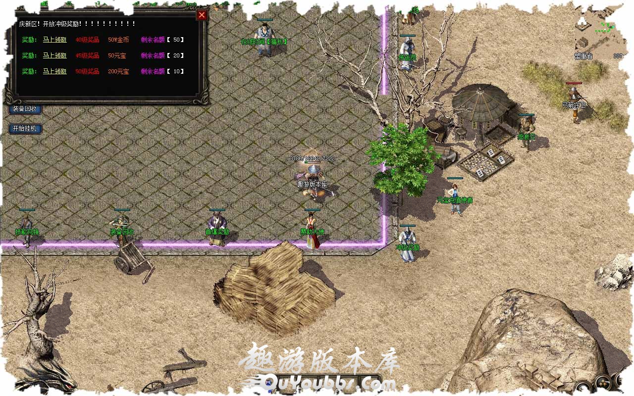 【服务器名】:1.80复古大区泉城公益,一切装备靠打,合区后开放经验加成,早进服晚进服都一样,超级大服,人山人海。 【版本介绍】:本服元宝1:10,第五天攻城首沙奖励3000元宝,之后每星期二四六攻城奖励1000元宝。 【游戏介绍】:每个地图都刷新各种BOSS,BOSS的HP越多爆率越高,爆的越好,散人不再寂寞。 【封挂处理】:本服装备小极品较多,人品爆发+3+4装备价值超高,散人不再是梦。 【装备层次】:沃玛-祖玛-赤月-雷霆--战神(游戏查看)!沃玛即可回收元宝,纯复古,重温经典。 【游戏特色】:本服保留了各种复古特色地图(其中含有部分隐藏地图,需要自己探索),增加了独家地图。 【游戏问题】:本服元宝好打,等级好练,游戏内容丰富,为防止盗版,各种特色内容请游戏内体会。 【练级问题】:挥起锄头去矿洞挖矿,然后在商品购买分解刀(3000金币一把)分解矿石,分解矿石有几率获得铭文。 【后期地图】:修罗祭坛,不归路,离恨天等等请游戏内体验,超级BOSS,难度高,爆率高。 【最新内容】:九重神技,逐日剑法,等级越高,伤害越高,PK王者! 版本地址