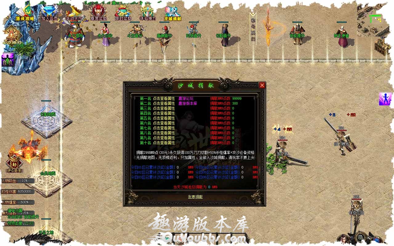 自动回收捡物,所有材料装备只能靠打! 本服亮点,免费自动捡物,超大背包,无限刀速,视觉效果更好,关键是打怪速度更快!!!! 所有地图“最中间位置”60分刷新一只“黑月天龙”BOSS。越高级地图星级越高!包括新手地图! 散人玩家上线领取群礼包:666666 散人玩家上线领取群礼包:666666 免费送终极宠物技能,可去新手地图刷怪,打“高级经验宝箱”可在“土城右下角”“经验使者”处升至160级。 进游戏送自动捡物,超大背包,无限刀,打所有怪!送,切割,斗笠,盾牌,时装,均有切割属性!! 160级即可前往二大陆,所有等级材料均可免费合成,升满只是时间问题!!! 更重要的还是不断下大陆追寻更高的地图,高级地图的小怪爆率很高哦,同样有几率出终极! 版本地址