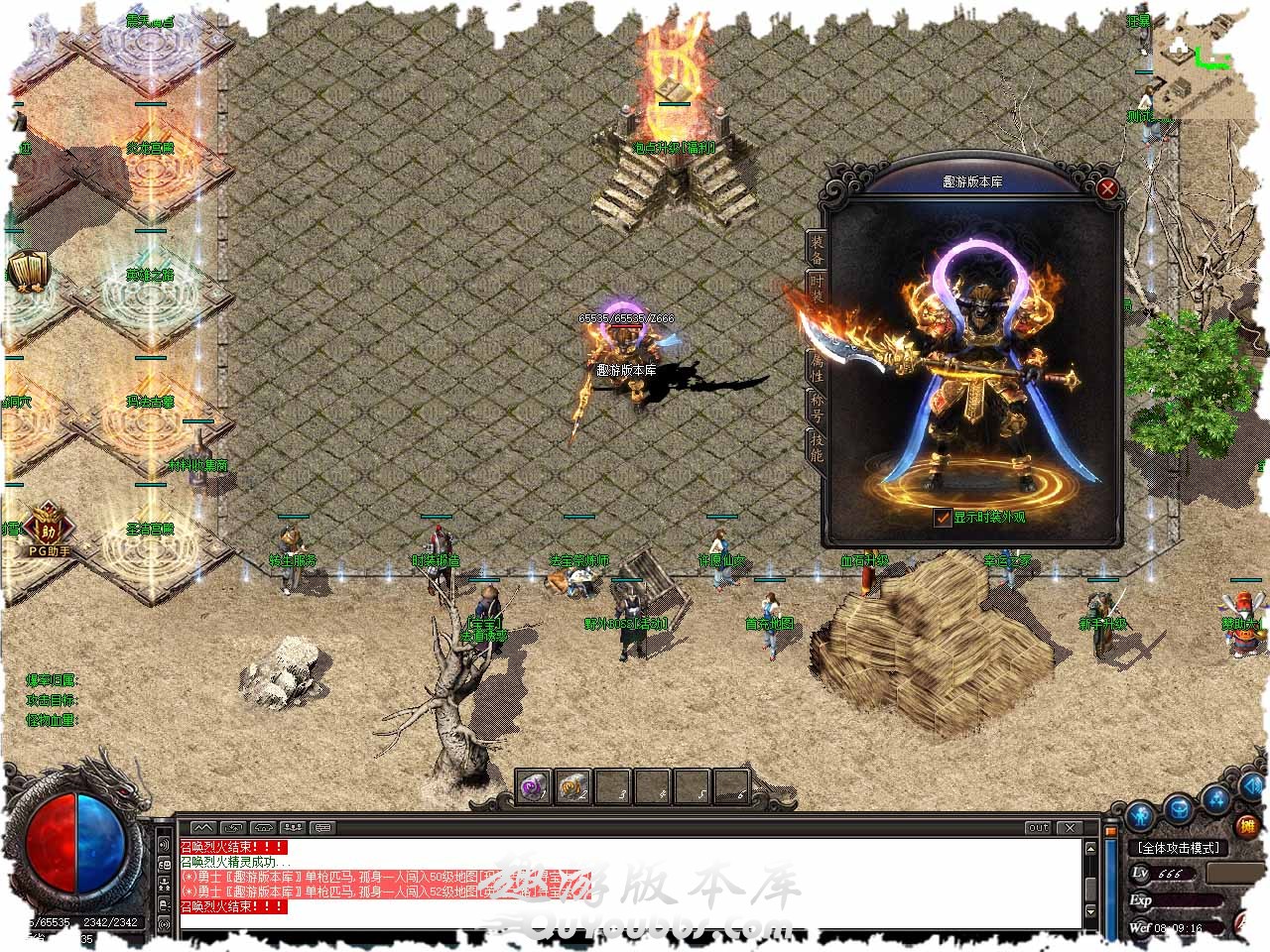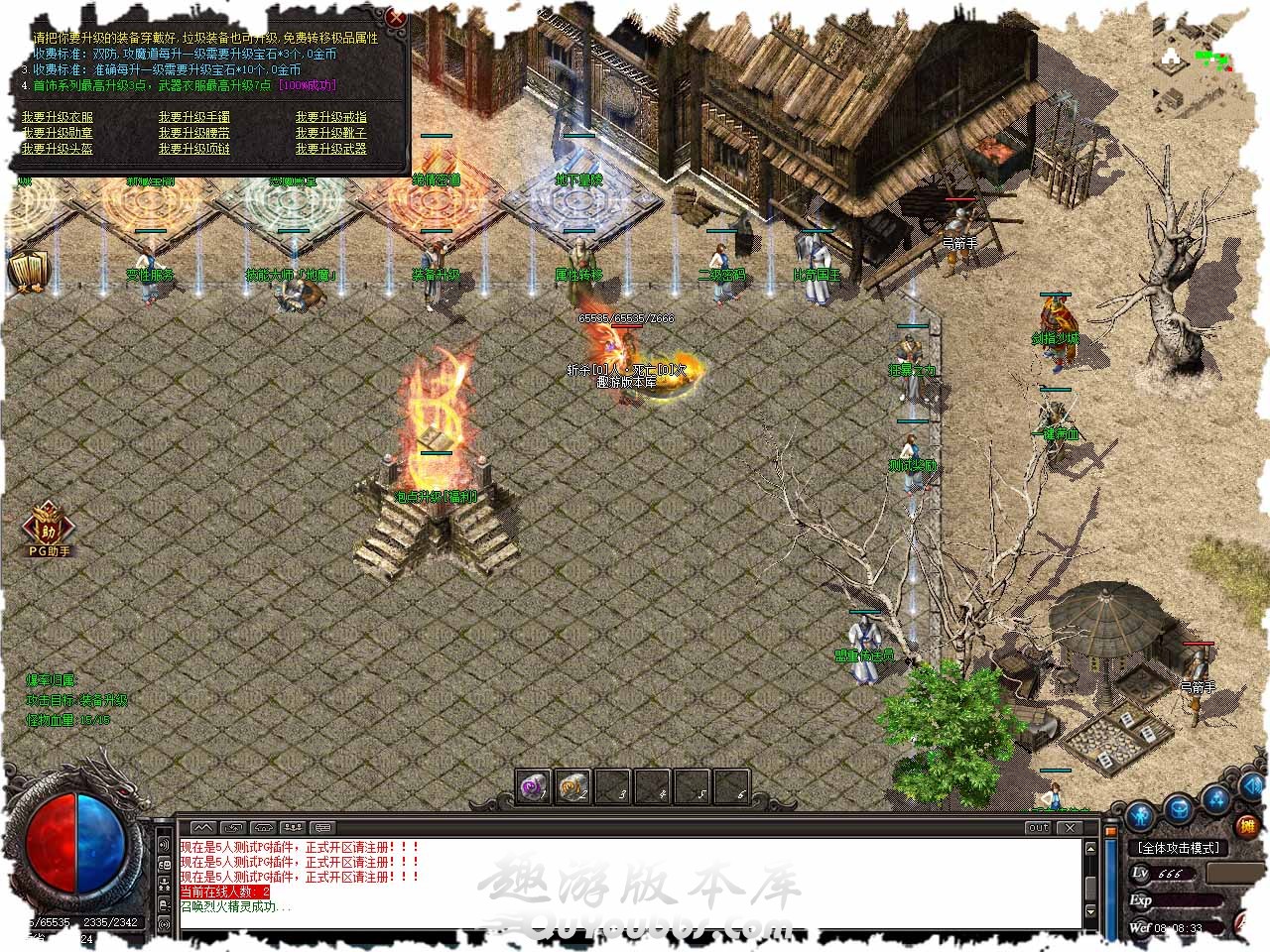 [游戏比例] 上线就送自动捡物,自动回收,1等于10W金币,不谈比例,不接受团队合作,纯广告服! [关于封挂]本服采用99%封挂系统 ,最强封脱机反人工智能,封无限刀。绝不让外挂满天飞,纯绿色游戏,人人平等! [挂机系统]本服采用独家挂机系统 ,告别老款挂机系统,玩家只要输入@持续挂机,就不会出现无怪停下,不再为升级而烦恼! [战士宝宝] 38级学习武普降临 ,50级召唤高级武普*1,55级召唤终极武曾*1。武曾附带绿毒!可与战士站刺位, [法师宝宝] 38级学习法神之 兽,50级召唤高级法普*1,55级召唤终极法曾*1。法兽附带绿毒! [法师诱惑] 35级诱惑毒蚁 ,43级诱惑I蚁,48级诱惑蚁后,52级诱惑狮子,55级诱惑幽宾判官! 法师共可带5只宝宝,升级超快! [道士宝宝] 35级召唤变异骷髅*2 ,40级召唤麒麟战士*1,42级45级召唤麒麟战士*2,48级召唤麒麟神*2,52级召唤金甲骷髅*2,55级召唤金甲神*2 道士诱惑] 35级诱惑毒蚁 ,43级诱惑I蚁,48级诱惑蚁后,52级诱惑狮子!道士一共也可带5只宝宝,升级打宝两不误! [游戏简介] F9内新增在线回收 ,超大随身仓库,全服文字过滤,尽量为玩家减少些不必要的麻烦。 版本地址