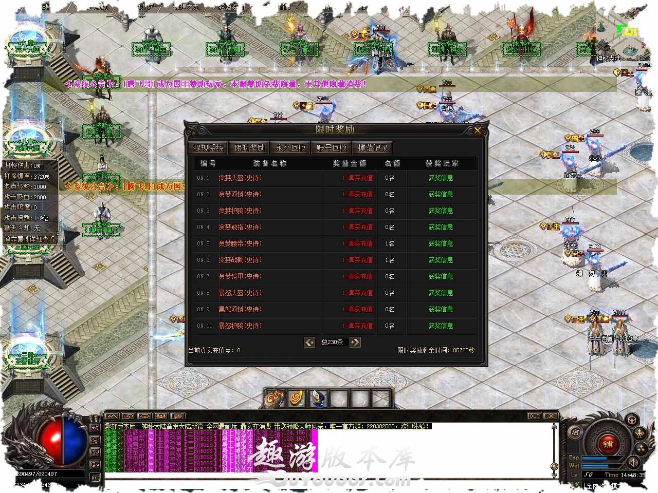 补丁大小:7.29GB,PAK补丁全部一次加密,测试客户端:17周年纯净端。QQ群兑换码:888888,此版本使用了ESP插件。版本带有假人系统,清档之后假人自动上线。此版本光柱设置需要自行添加。