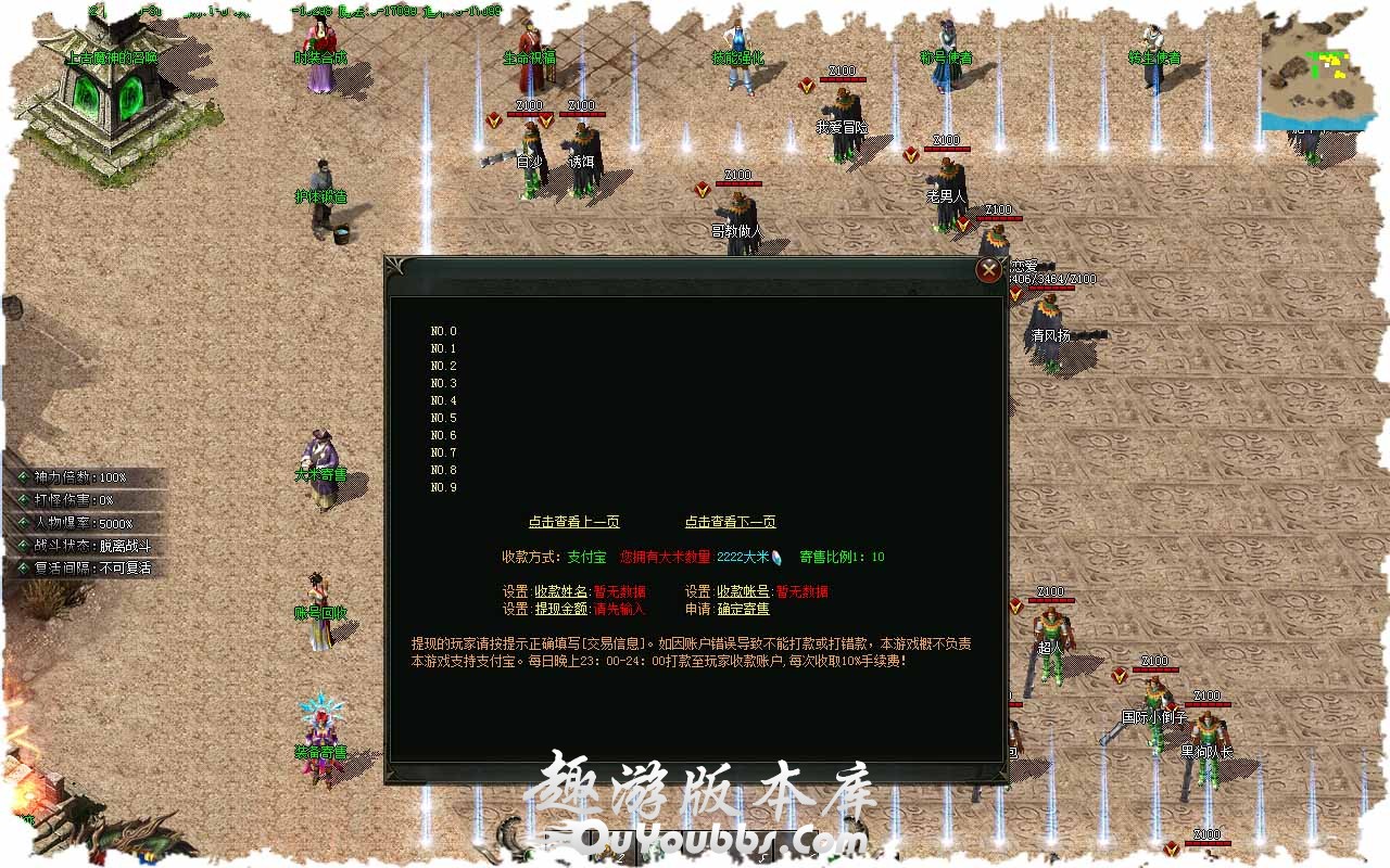 [1]:元宝比例1:100000大米1:10! [2]:已开放近2个月,获得大量玩家认同,我们也一直优化,更新。力争为玩家带来畅爽的游戏体验! [3]:专属版本,承诺永不关爆率,不限制爆率(所有东西皆可爆出)。 [4]:上千张地图,上万件专属神器,让你每次上线都充满探索感(玩上一年都不腻)。 [5]:新区第三天下午合区拿沙,千人攻城,等你来抢。 [6:琴天网络一年磨一剑,定制封挂,致力打造全网最绿色传奇游戏! 版本地址