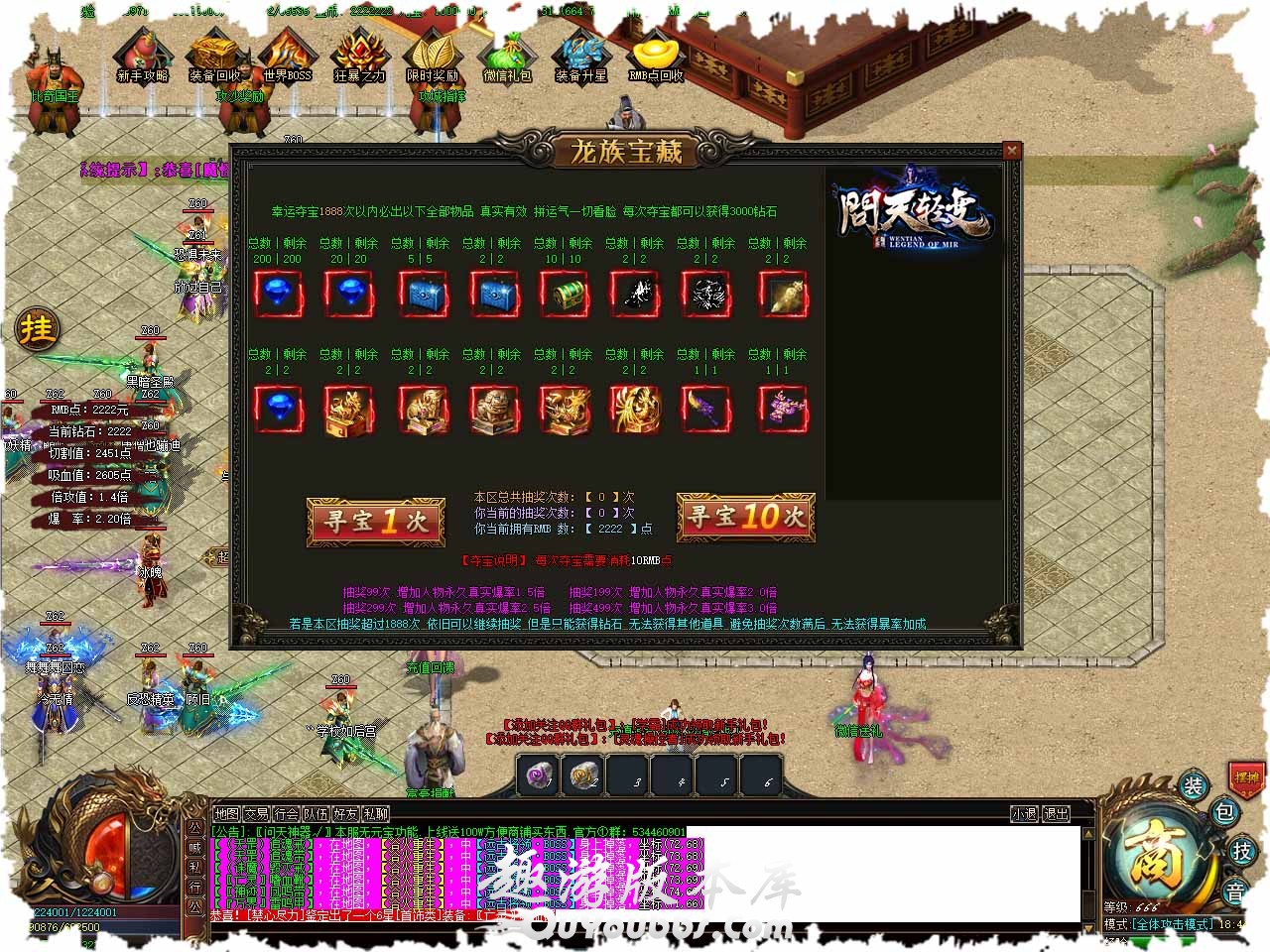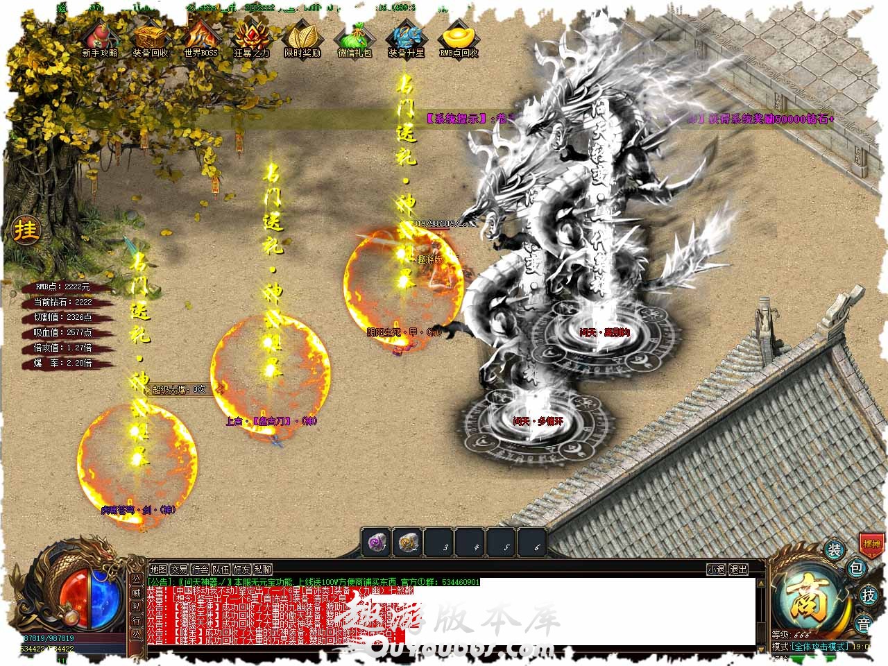 版本介绍:本服无任何收费地图,所有的地图都可以通过材料进入,无任何套路、隐藏,所有大陆免费进,冲32,等于终极套。 版本介绍:本服0-6级装备都会有光柱效果,玩家区分装备可以按装备等级来区分,0级以上的装备都可以回收游戏点。 版本介绍:本服切割 称号升满=20W切割属性,狂暴=5W切割属,沙城捐献=15W切割属(再无其他切割)新手建议先升级称号。 版本介绍:1、带红色名字的怪物都必爆印记材料,小怪也爆,爆率适中。2、商铺有卖印记材料,价格便宜,散人玩家可以打装备回收游戏点,再商铺购。 活动介绍:本服开区2小时,系统开启终极地图免费进,请玩家一定不要错误,里面狂暴。 钻石用途:可升级等级 时装升级 装备升星.等等。 版本介绍:本服无任何收费地图.所有的地图都可以通过材料进入.无任何套路.隐藏.所有大陆免费进。 本服爆率:所有地图都有BOSS刷新.红色名字的怪爆本服终极装备.绝无半点谎言 (爆率真实有效)。 关于沙城捐献。得+%20减伤.+%20攻击伤害.血量+%20.真实爆率双倍.+1.2倍攻,专属地图(本服最值得拥有的)。 版本介绍:本服冲100即可进入全服唯一充值回馈地图.,本服只有一种材料,通用所有特殊条件。有材料等于一切.切记.材料是本服唯一的出路。 版本地址