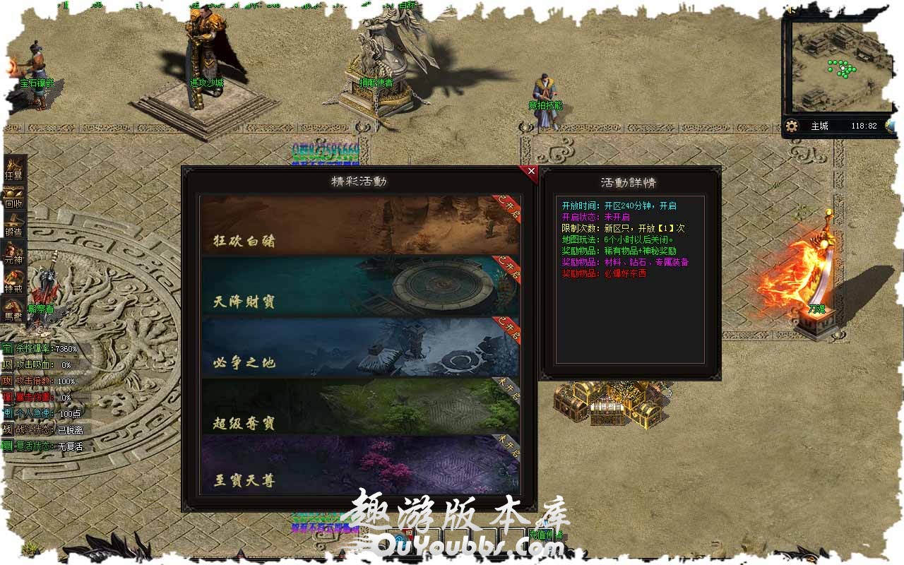 游戏介绍:铁匠制作NPC语音介绍功能九大城市,无暗坑,绿色游戏。 游戏介绍:专属剧情散人可追梦、百张地图、千件神器等你体验。 游戏介绍:全天活动不断小怪可追梦、无套路、纯散人服。 游戏介绍:封一切WG、只要发现无解释直接封同机器所有号。 开区模式:每天开放6个新区、区区外宣,保证人气、区区爆满。 攻沙时间:新区开放第三天下午合区晚上20点攻沙、PK无限。全新版本历时6个月精心制作欢迎各界骨灰玩家体验。 版本地址